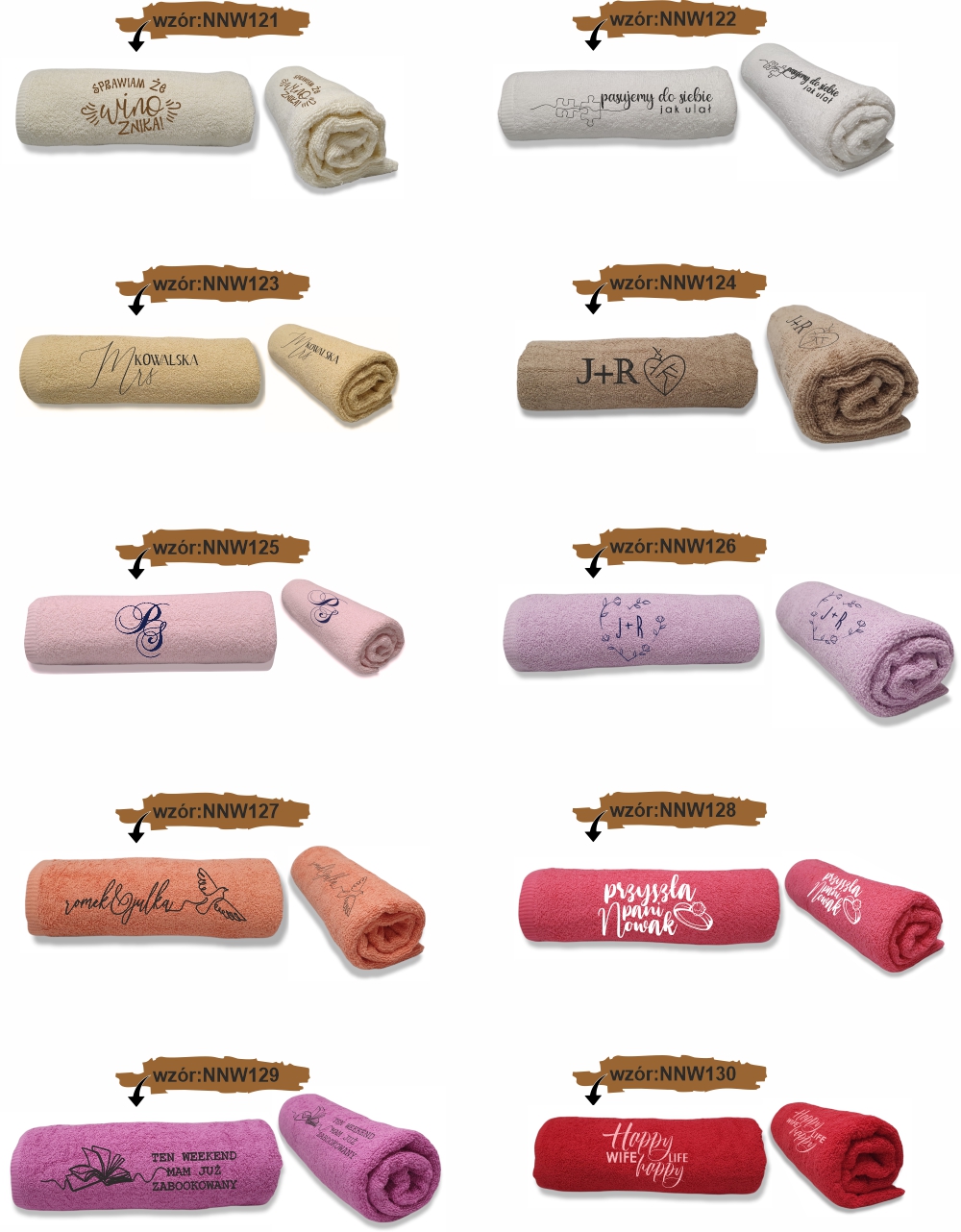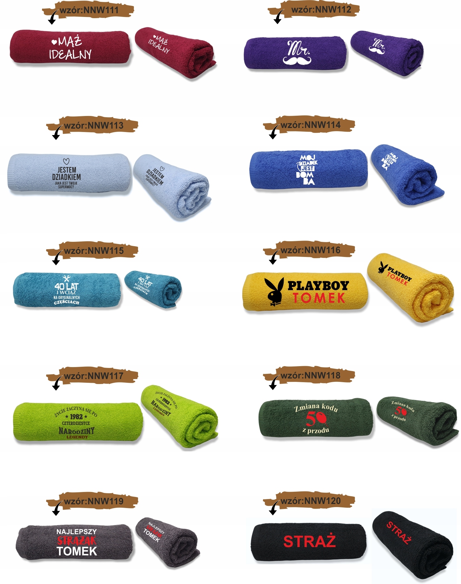 Можливість змінити колір рушника та колір вишивки, нижче показано доступні кольори рушників та ниток.