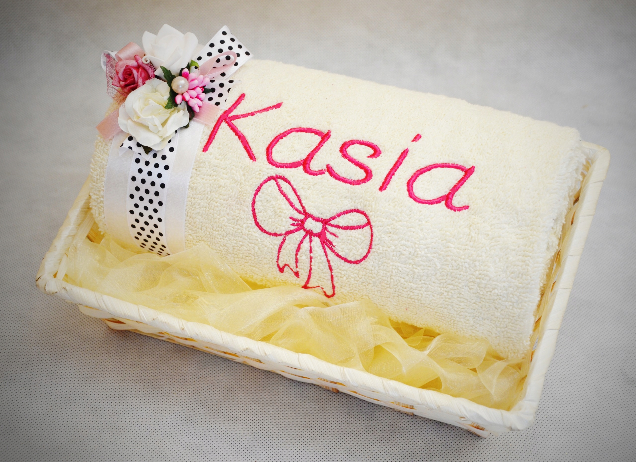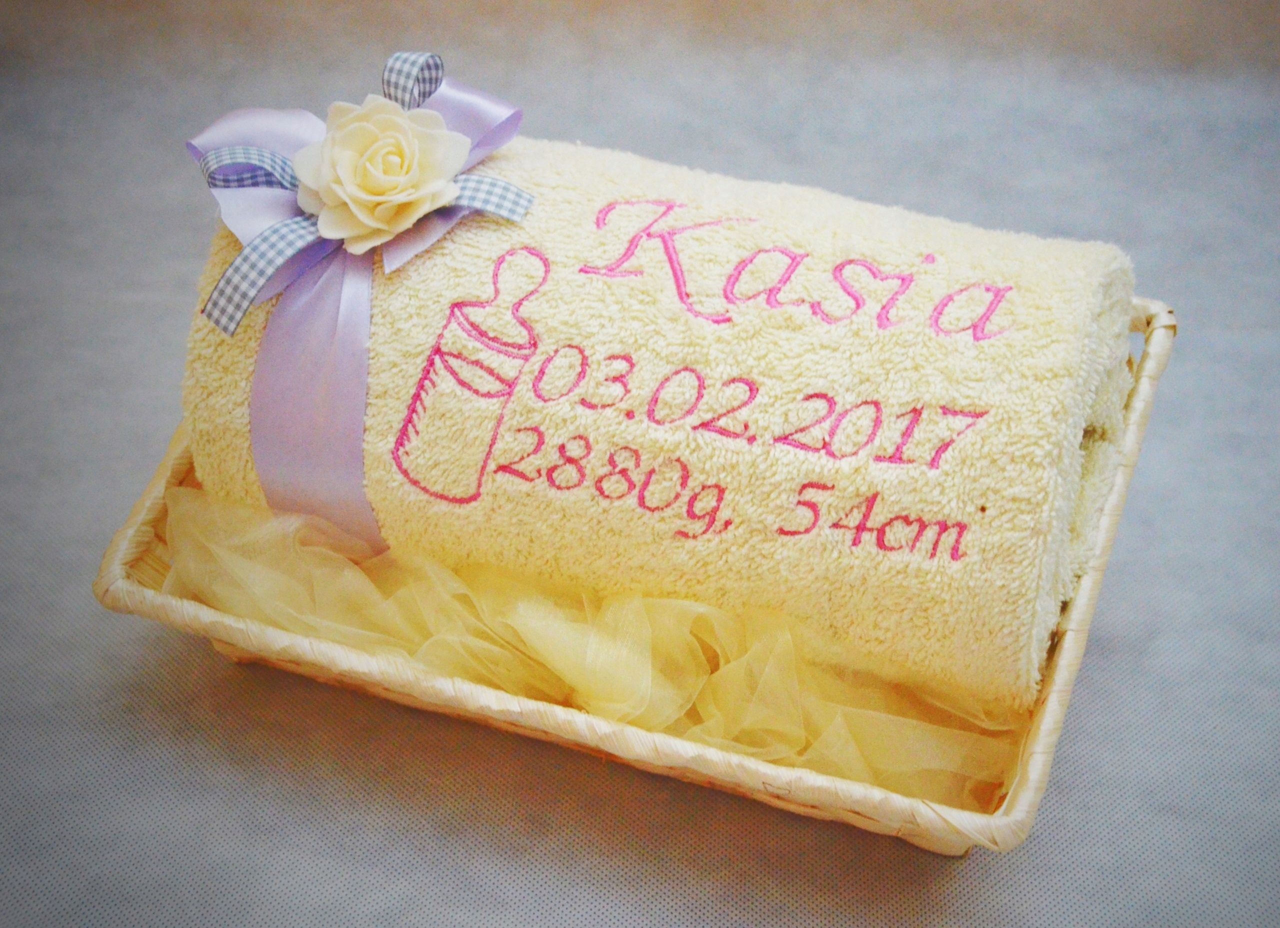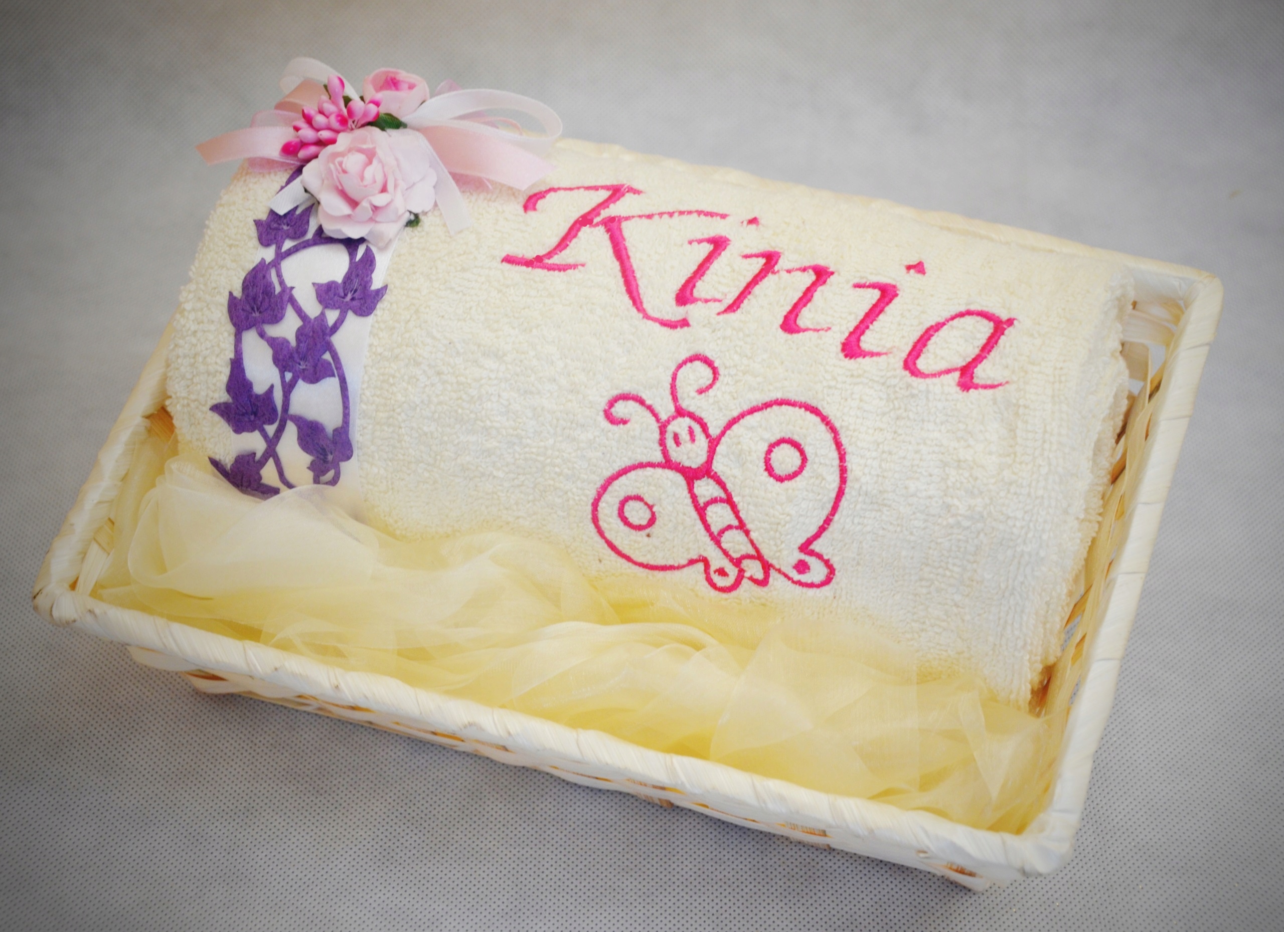 Шукаєте оригінальний, чарівний і практичний подарунок для малюка, на день народження чи хрещення? Запрошуємо придбати товстий пухнастий рушник з індивідуальною вишивкою в кошику з гарним декором.