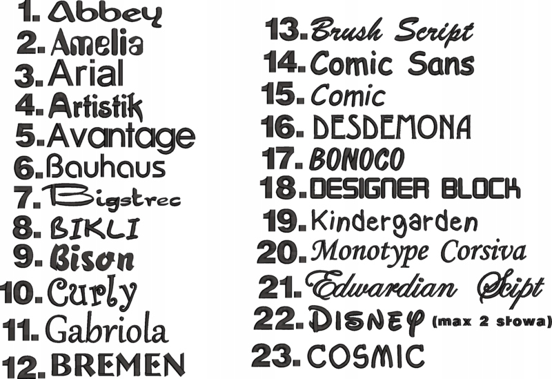 - КОЛІР ШРИФТУ (НИТКИ - будь-який)< /li>