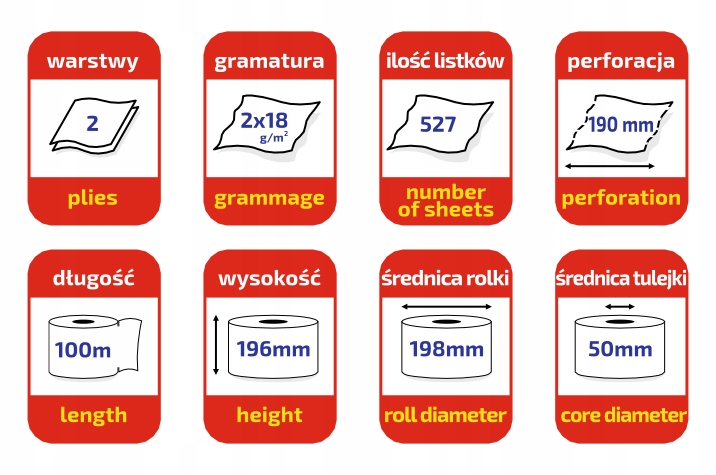 Довжина паперового рушника становить 100 метрів, тобто довжина одного рулону буде 100 метрів, а ширина залежить від технічних характеристик продукту. Несклеєні шари означають, що шари паперу з’єднані разом міжшаровими смугами, а не клеєм, що забезпечує вищу механічну міцність виробу.