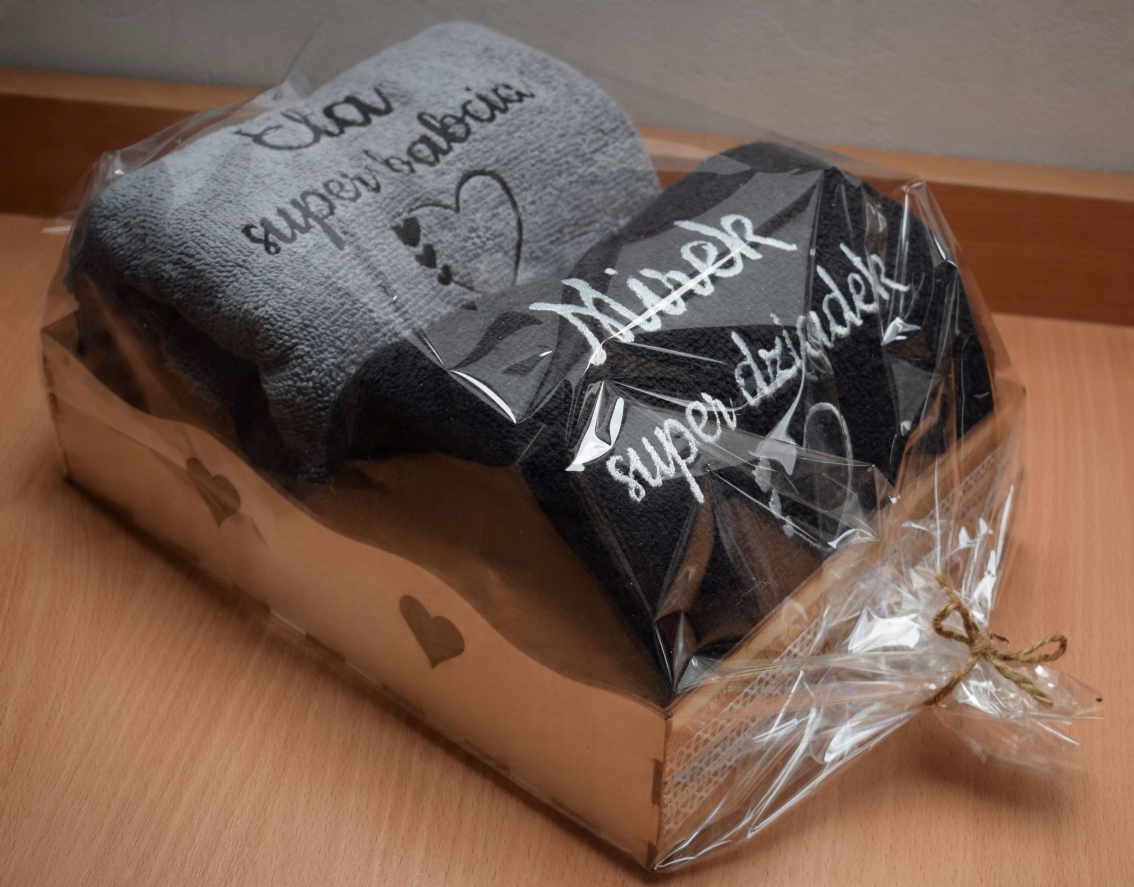 У вартість набору входить вишивка на кожному рушнику, яка складається з імені, наприклад Мірек, короткого тексту до 15 символів, наприклад, супер дідусь, і вибрану графіку.