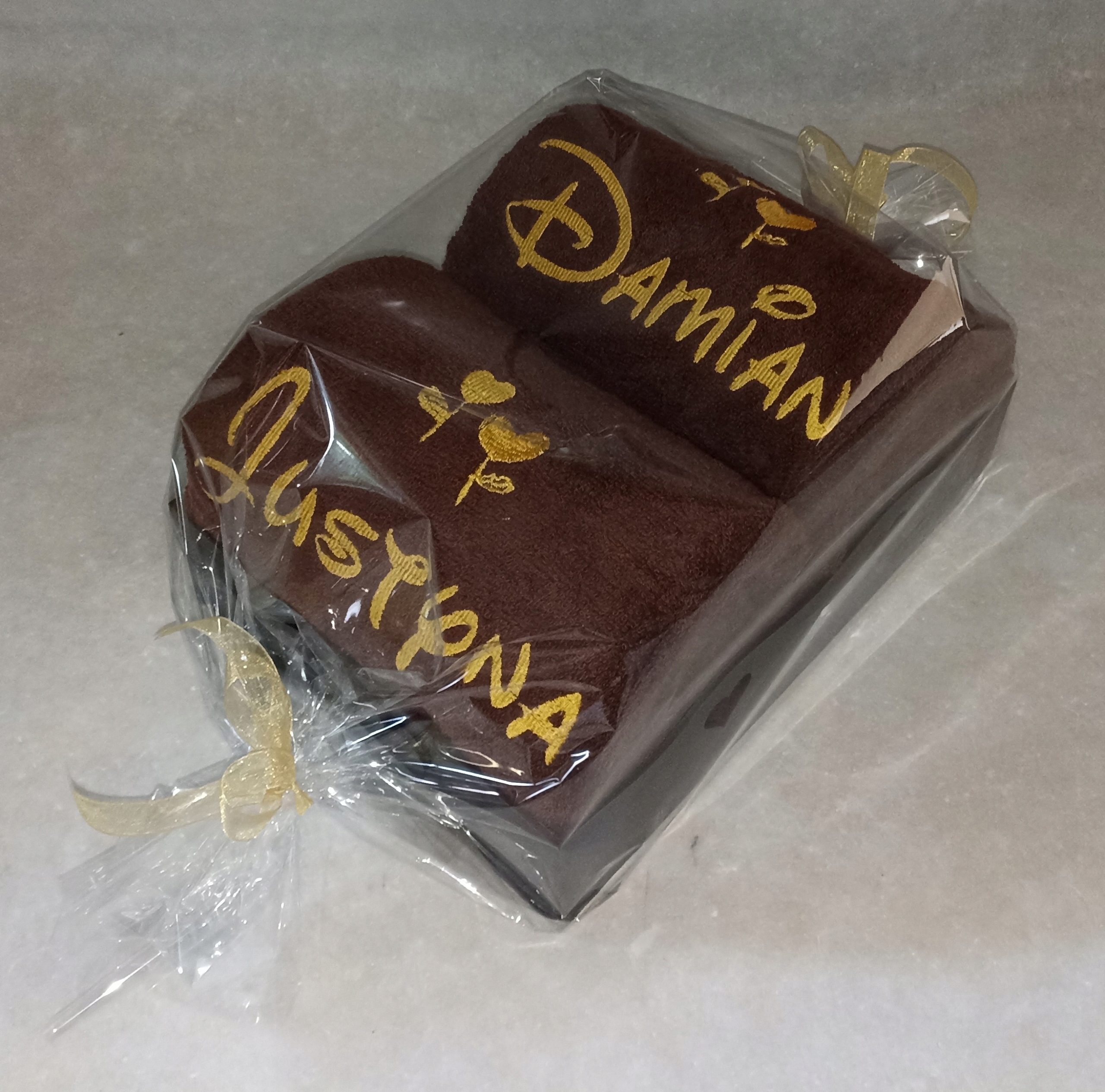 У вартість комплекту входить одноколірна вишивка на кожному рушнику, що складається з імені - наприклад Юстина та обраної графіки.