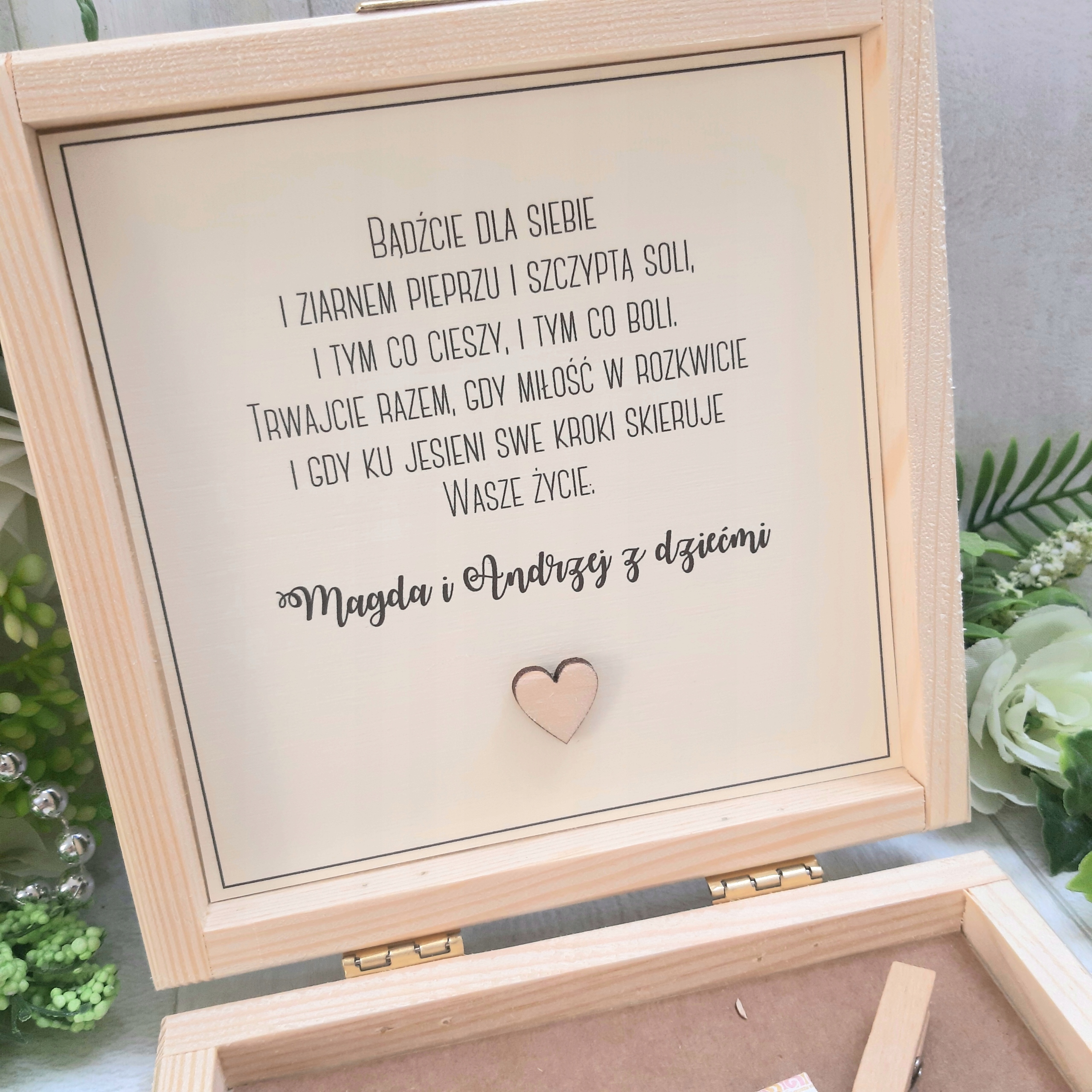 Ось ідея для дерев'яної скриньки з персональними побажаннями для молодят.