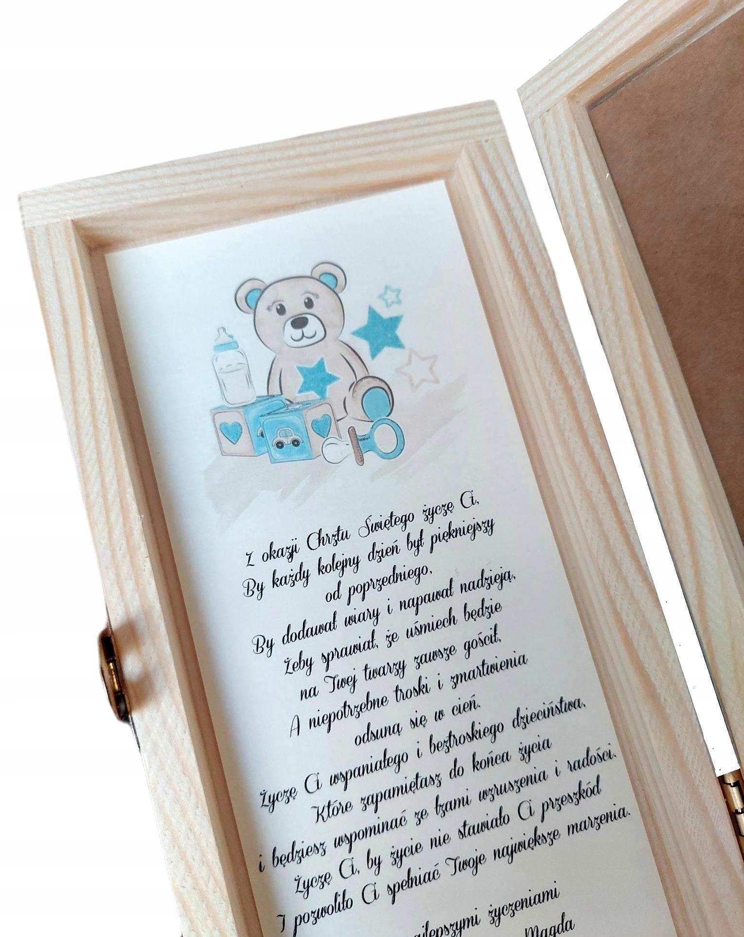 Дерев’яну коробку з персональними побажаннями та місцем для готівки чи іншого подарунка.
