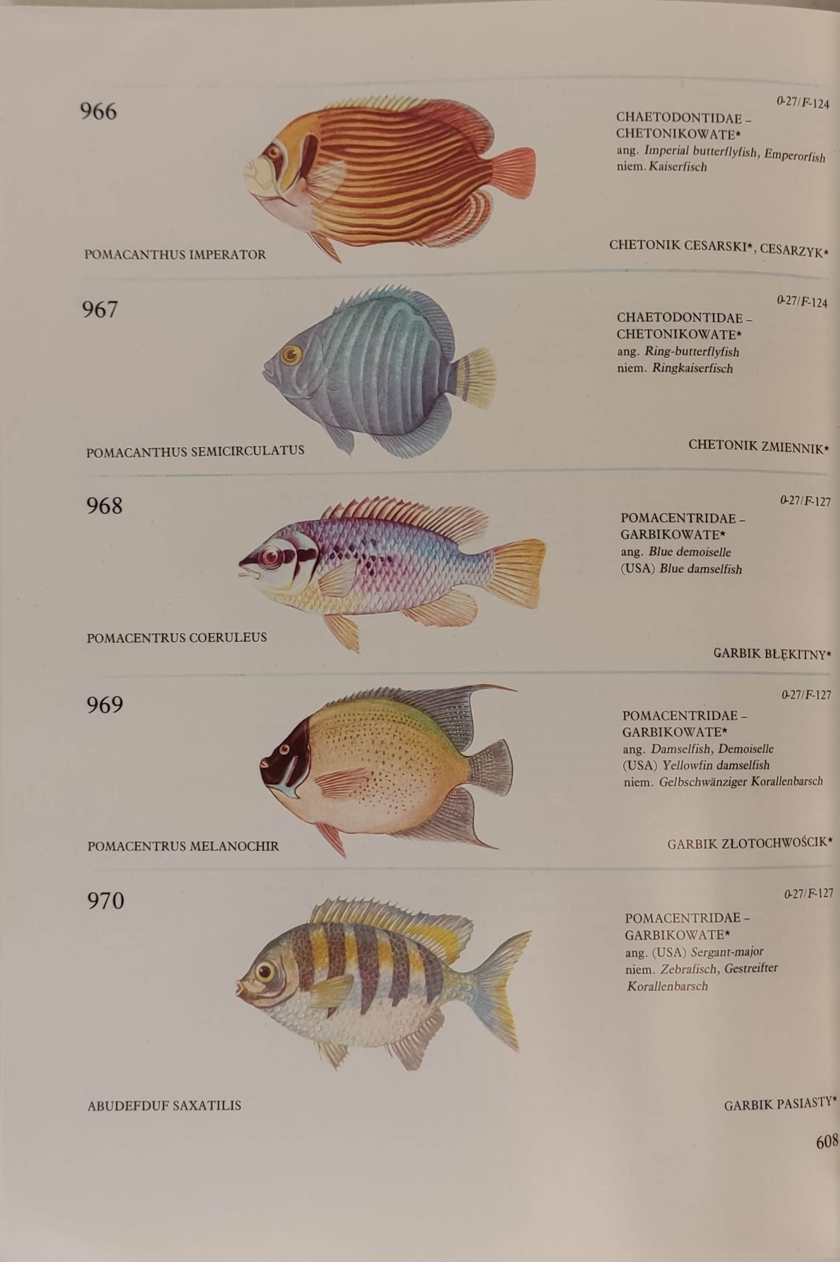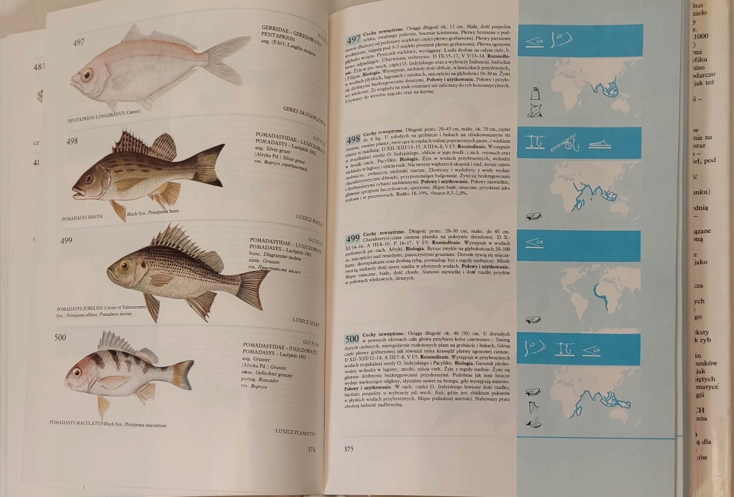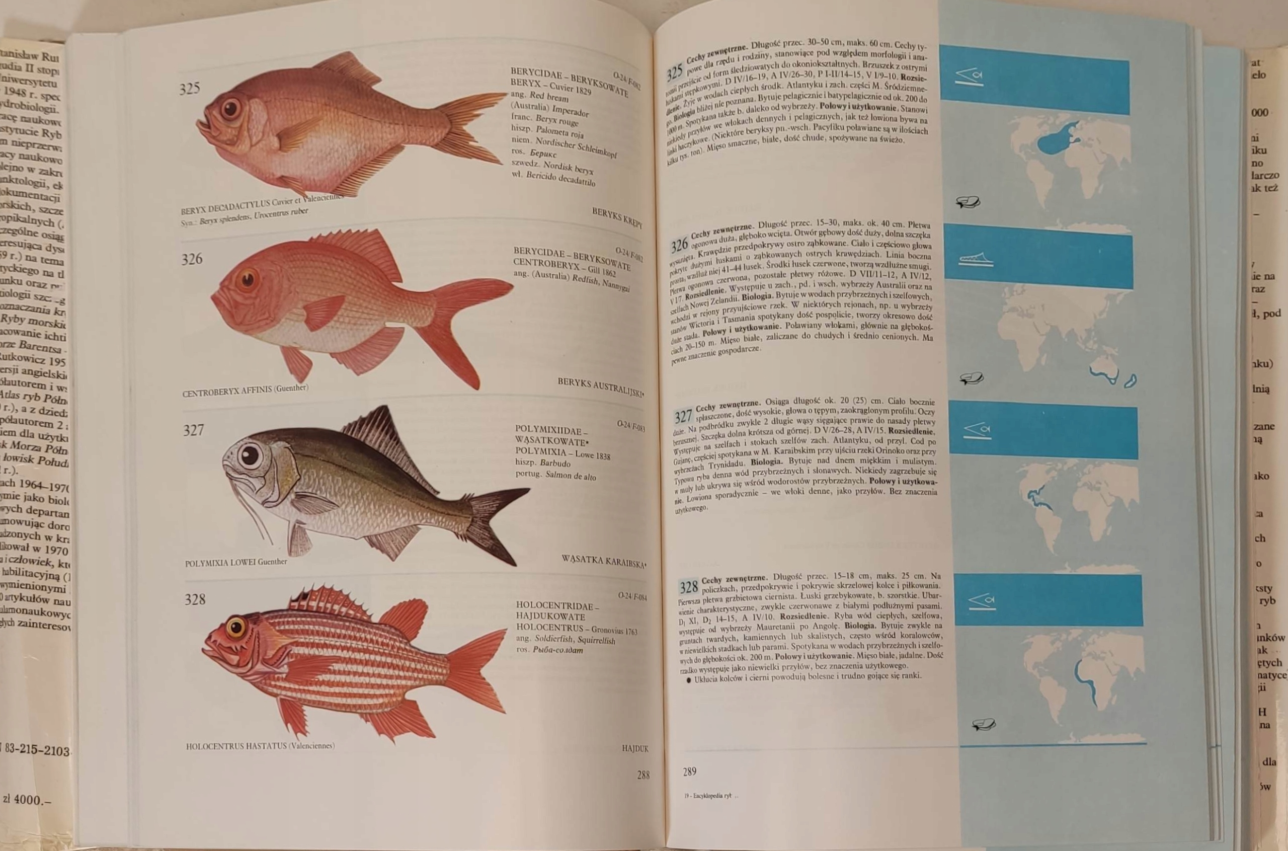 Малюнки риб зробили: В. Матушек, З. Раліцький, Л. Валавський, М. Закольська. Морські видавництва. Гданськ 1982. Видання 1 Dim. 29,3 х 21,5 стор. 662. Тверда тканинна палітурка в суперобкладинці (бруд на полотні, потертості по краях і бруд - переважно на корінці суперобкладинки, потертості). Дизайн суперобкладинки, обкладинки, титульної сторінки та типографського макета В. Кавецького.