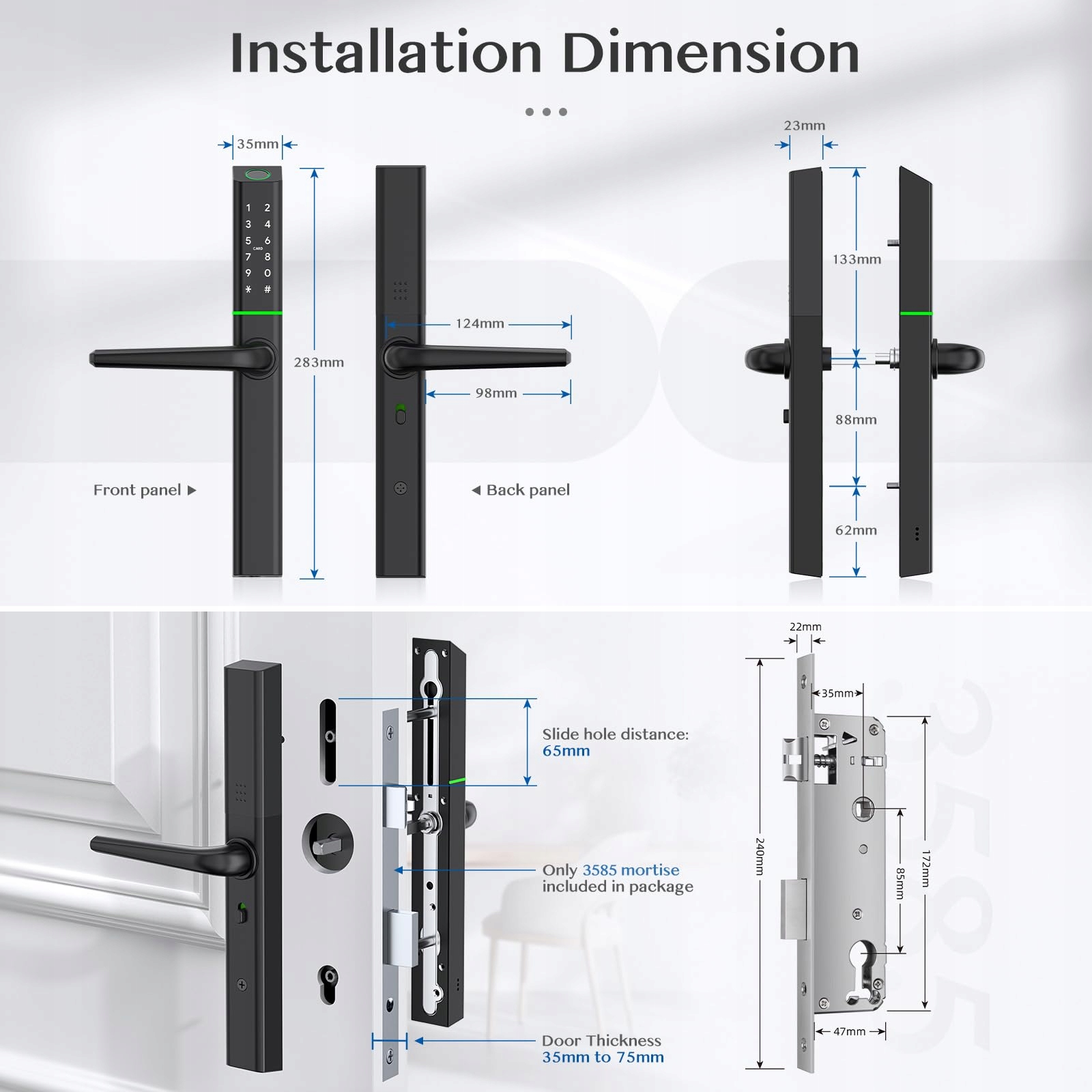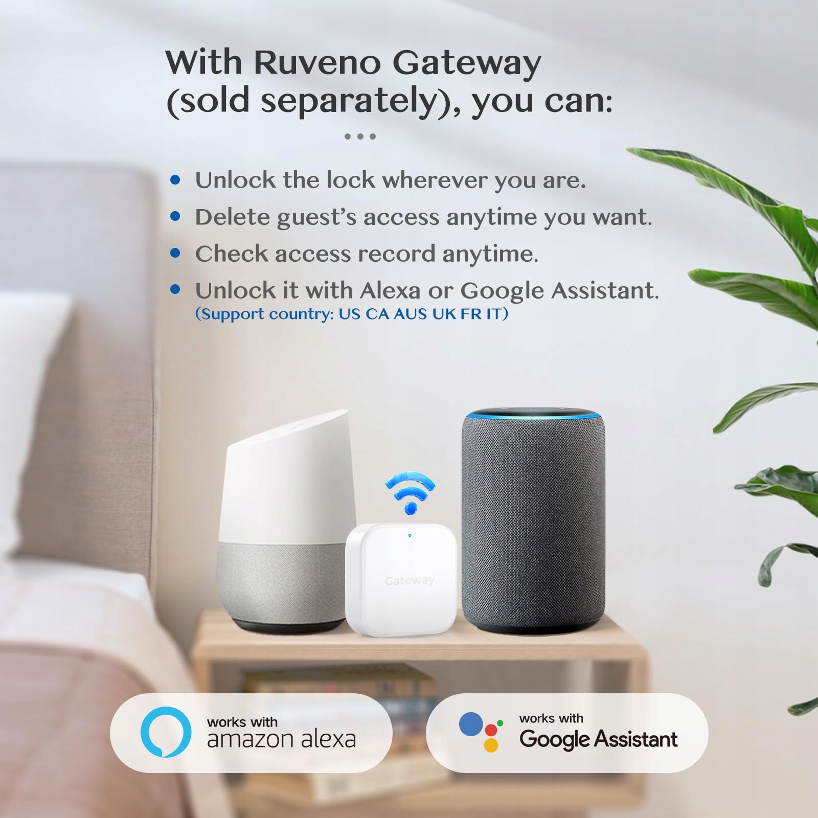 Відкрийте надійний розумний замок Ruveno 7 в 1 двері, що забезпечує безпеку та комфорт у повсякденному житті. Завдяки 7 методам відкриття дверей, включаючи відбитки пальців, контроль програми Bluetooth та код доступу, вам ніколи не потрібно турбуватися про те, щоб залишатися заблокованими. Розроблений для стійкості до погодних умов, цей замок, виготовлений з міцного цинку, ідеально підходить для вимогливих погодних умов.