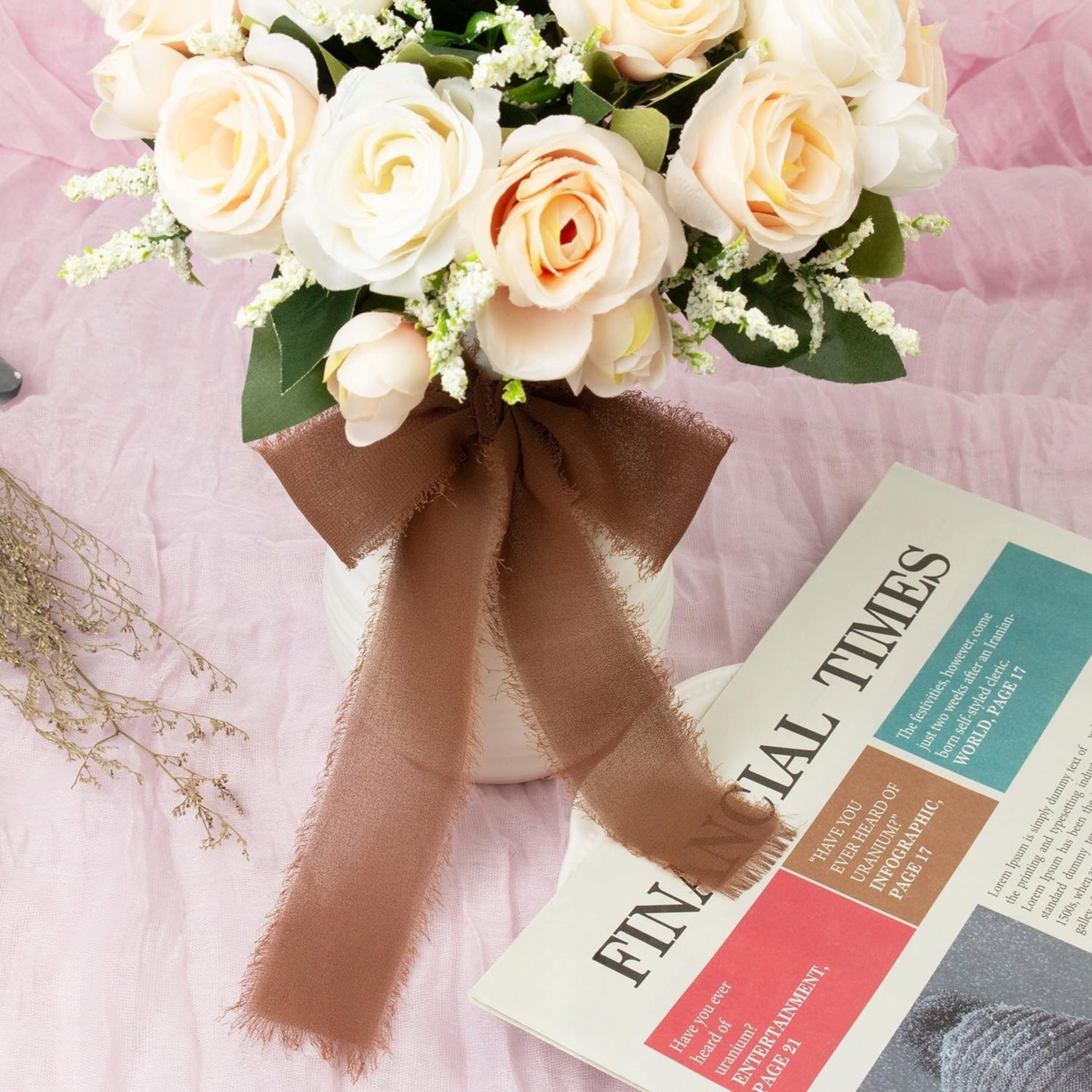 Додайте витонченої елегантності та прохолодного шарму своїм прикрасам за допомогою нашого набору з 3 шифонових стрічок у відтінку кава! Ця ніжна стрічка у вишуканому, стриманому кольорі ідеально підійде для багатьох композицій – як класичних, так і сучасних.