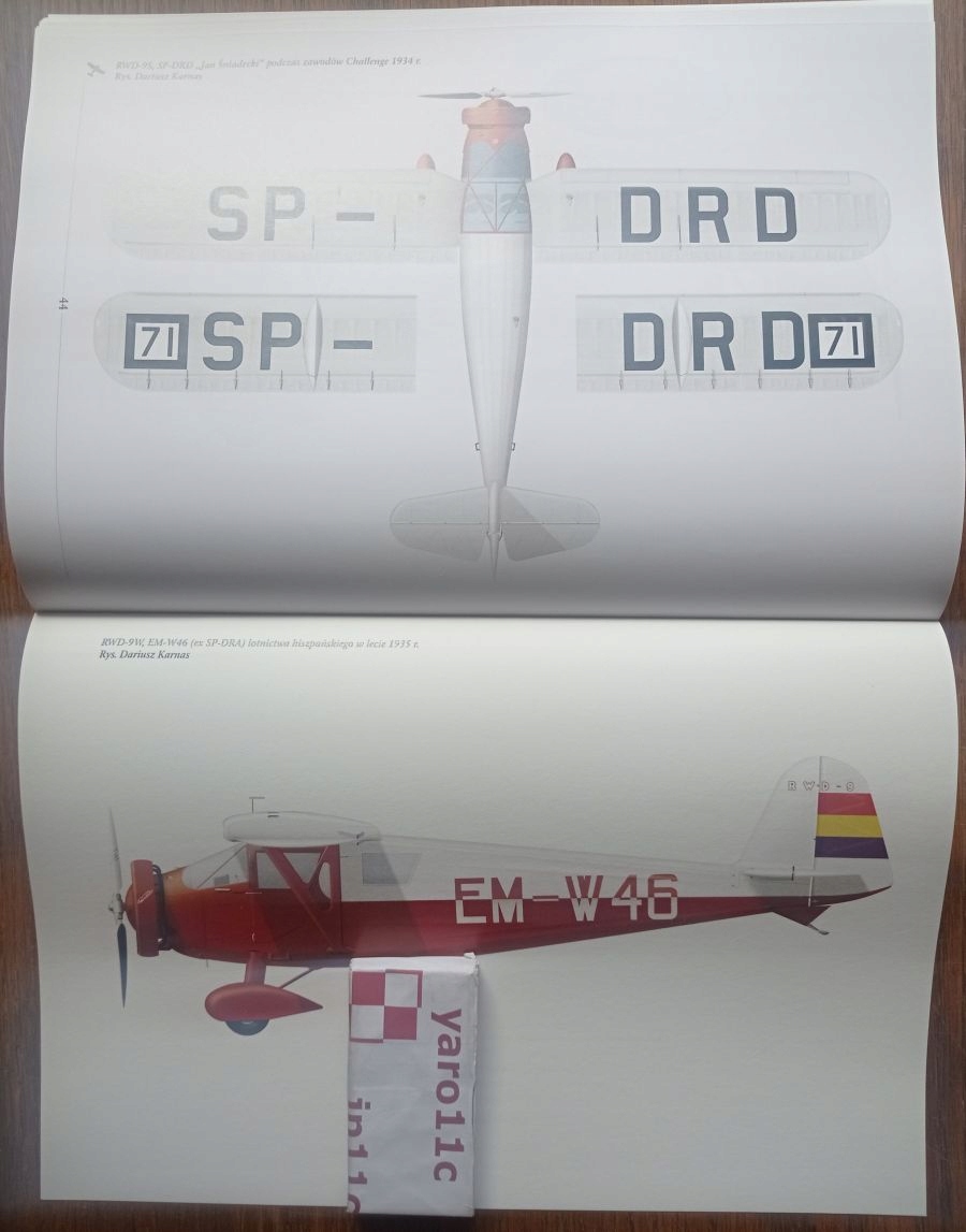 На 46 сторінках є понад 70 чорно-білих фотографій періоду, які демонструють красу та елегантність RWD-9. У книзі не лише представлено історію літака, але й представлено три зразки кольорових профілів, у тому числі один із 4 переглядів.
