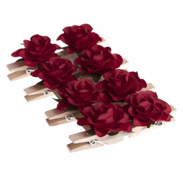 RÓŻYCZKI PAPIEROWE NA KLAMERKACH Bordowe 8 sztuk