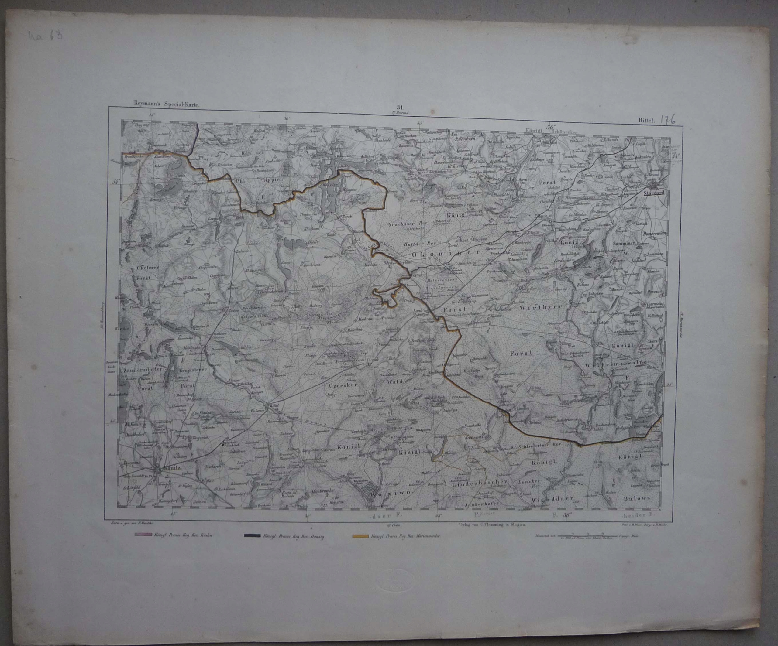 Карта із серії «Спеціальні топографічні карти Німеччини Реймана», авторами якої є Ф. Гандке, Ф. Кунцер і Х. Мюллер, була опублікована в Ґлогуві видавництвомKartographische Abtheilung der Königl. Preussischen Landesaufnahme (Verlag C. Flemming) Польща та Литва. Одні з найбільш точних і читабельних карт 19-го століття, вони мали великий вплив на подальший розвиток військової картографії.