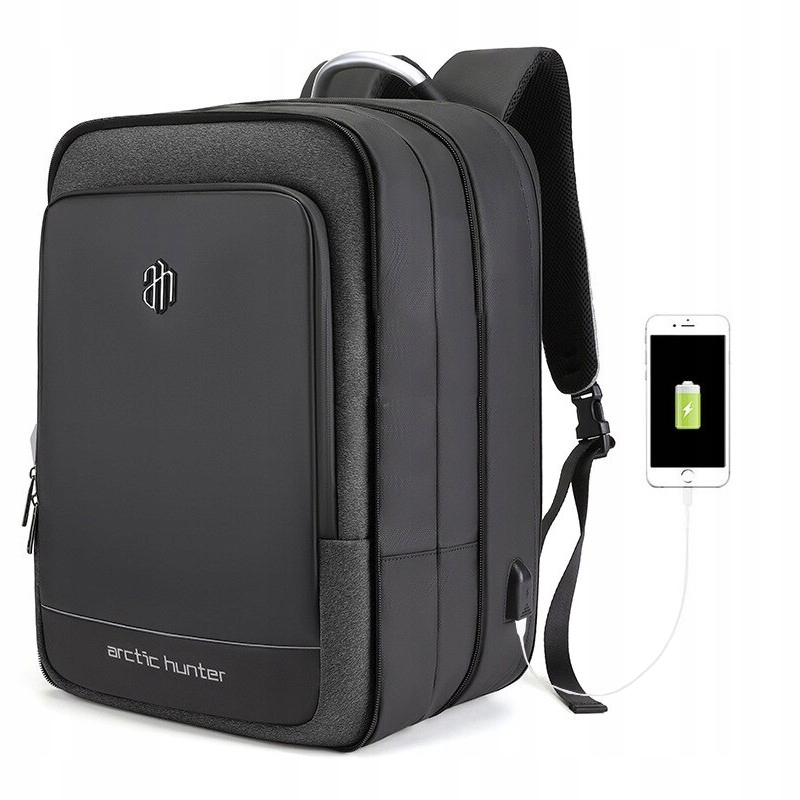 Сучасний рюкзак для ноутбука відArctic Hunter із символом B00227Lз мінімалістичним дизайном. Виготовлений зі стійких до подряпин і водостійких матеріалів - Оксфорд і ПВХ. Основні блискавки прогумовані, тому дощ не просочується в рюкзак. Найбільшою перевагою цього рюкзака є незвичайний спосіб відкривання основного відділення - його можна відкрити як валізу, що забезпечує необмежений доступ до всього вмісту. Основне відділення має кишеню для ноутбука до 17,3" і кишеню для планшета до 10" - обидва закріплені еластичними ремінцями, кишені для аксесуарів і дуже великий простір для пакування одягу. Місткість рюкзака можна збільшити одним рухом - розстібаючи одну блискавку, ми отримуємо 10 см глибини рюкзака. У цей рюкзак можна з успіхом упакувати найнеобхідніше навіть для 7-денної подорожі. На передній частині рюкзака є кишеня з органайзером для підручних речей, сюди можна помістити гаманець, телефон, ручки, документи або планшет. Спинка рюкзака обшита гнучкою губкою ергономічної форми, завдяки чому вміст рюкзака захищений від ударів і рюкзак зручно сидить на спині. На задній стінці рюкзака є нейлонова лямка, завдяки якій ви можете розмістити рюкзак на ручці польотної сумки. Лямки рюкзака плоскі, широкі та S-подібні, завдяки чому рюкзак краще лягає на плечі, а вага розподіляється рівномірно. На лямках є дві кишені для дрібниць і відбивачі для кращої видимості в темний час доби. Рюкзак також має дві міцні ручки (включаючи одну сталеву), тому ви можете зручно носити його в рукахяк сумку. Рюкзак додатково оснащений зовнішнім USB портом, тому для зарядки телефону або іншого портативного пристрою не потрібно виймати павербанк з рюкзака. Рюкзак Arctic Hunter з символом B00227L ідеально підходить для будь-яких умов, як щоденних, так і для багатоденної подорожі, де велике значення мають невеликі розміри ручної поклажі.