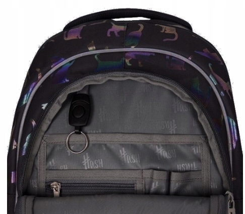 Чорний рюкзак Hash із трьома відділеннями та привабливим принтом із зображенням неонових котів. Завдяки голографічній технології кожна дівчина виділятиметься в шкільних коридорах. Рюкзак Hash має три функціональні відділення, оснащені практичною кишенею і органайзером для дрібниць. Він використовує новітню технологію Ergo Back, яка мінімізує тиск на плечі та хребет і забезпечує комфорт дитини
