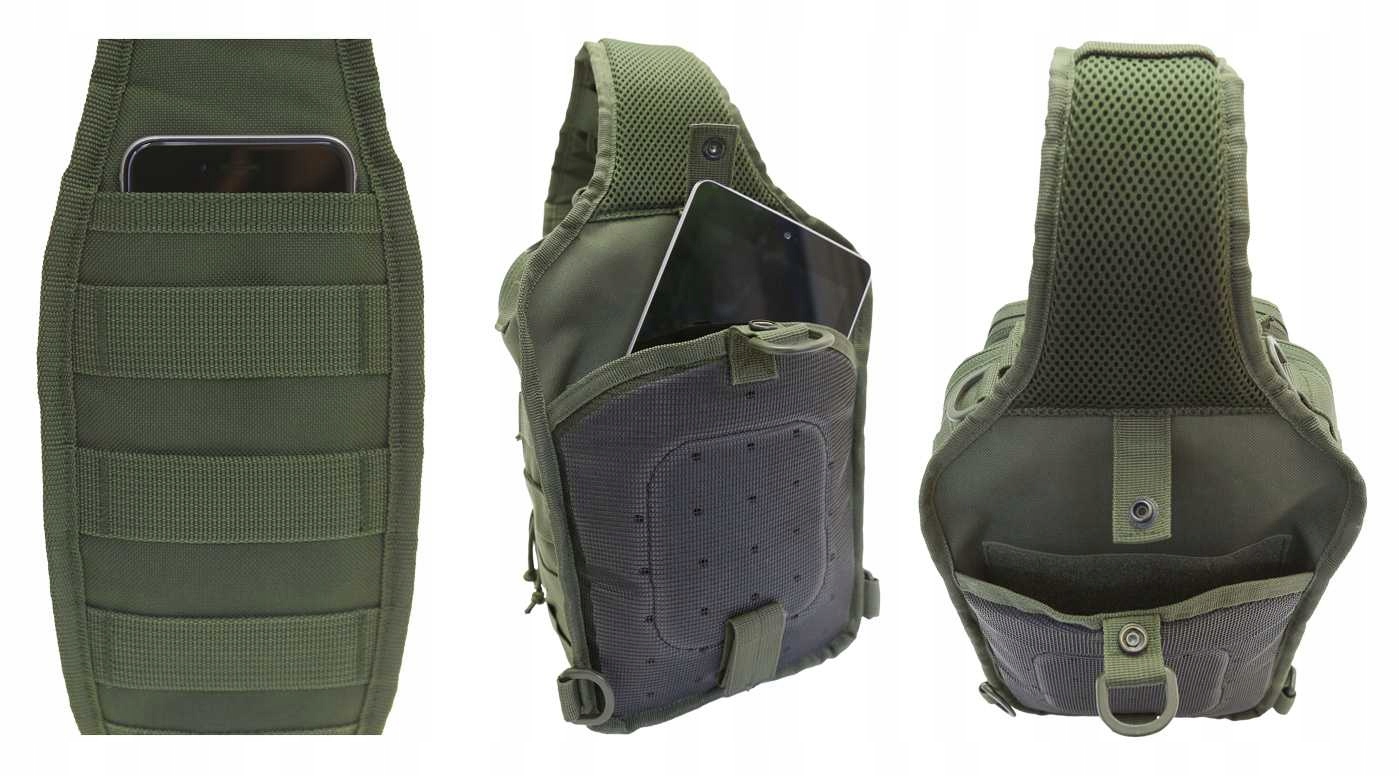 Перевагою є дві приховані кишені для важливих речей. Одна плоска на тильній стороні, куди легко поміститься планшет. Другий — непомітний на плечовому ремені, завдяки чому наш смартфон завжди буде під рукою та водночас у безпечному місці.