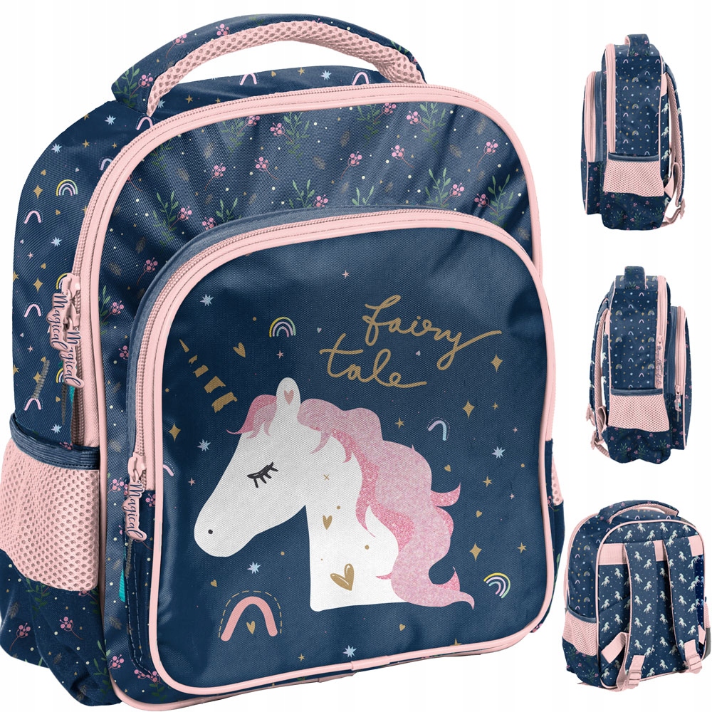 Рюкзак, виготовлений з матеріалів найвищої якості, ідеально підходить для дітей, які тільки починають свою пригоду з навчання в дитячому садку чи дитячому садку. Він дуже легкий, має м'який ергономічний ремінь з регульованою довжиною, що підвищує комфорт використання. Спинка анатомічної форми і злегка посилена поролоновими панелями допомагає зберегти правильну фігуру дитини. Безпеку на дорозі забезпечують численні світловідбиваючі елементи, якими також прикрашений рюкзак. Функціональність використання гарантують основне відділення, додаткова кишеня спереду та дві бічні кишені з сітки, які є ідеальним місцем для пляшки води чи пляшки з напоєм.