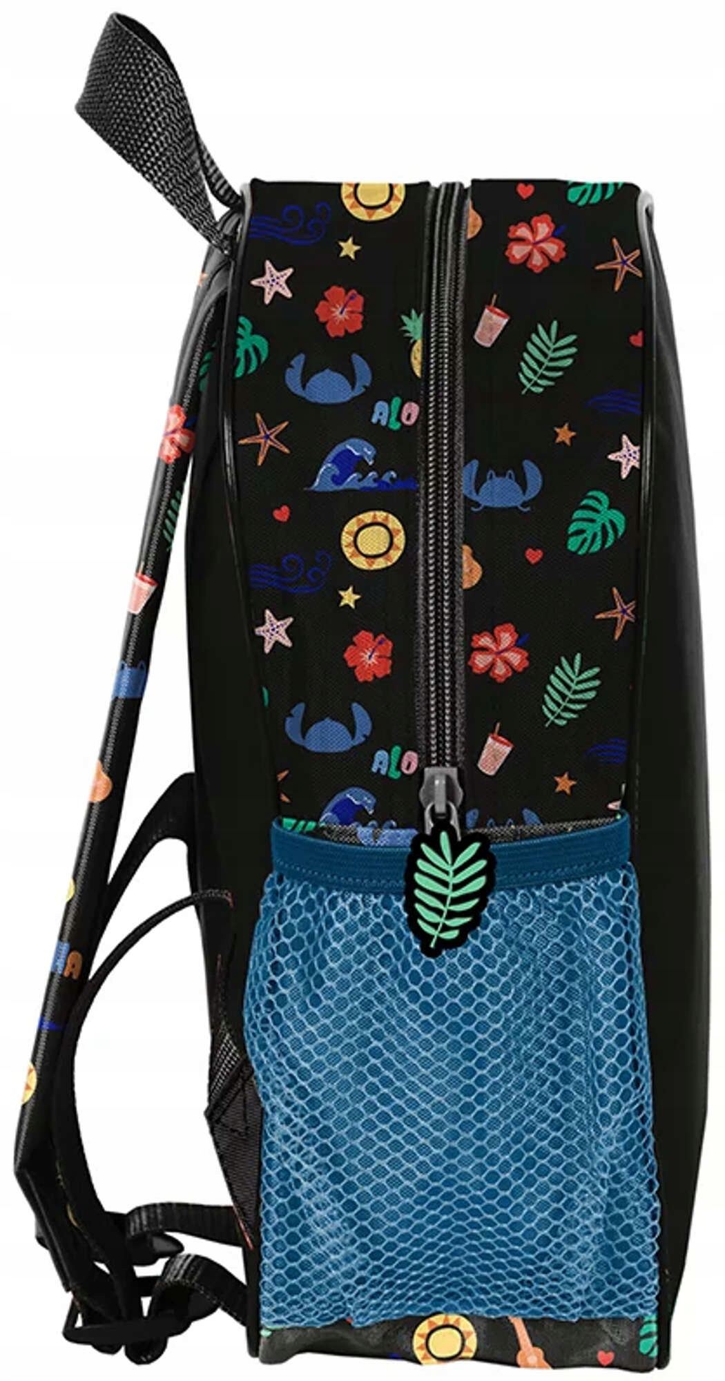 Рюкзак чорного та рожевого кольоруwey, має зображення усміхненого Стіча та напис "Aloha" .