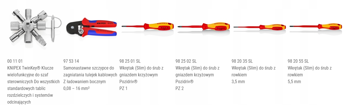 - 15,98 25 01 SL 1 x викрутка Knipex (Slim) для гвинтів із головним торцем PlusMinus Pozidriv®