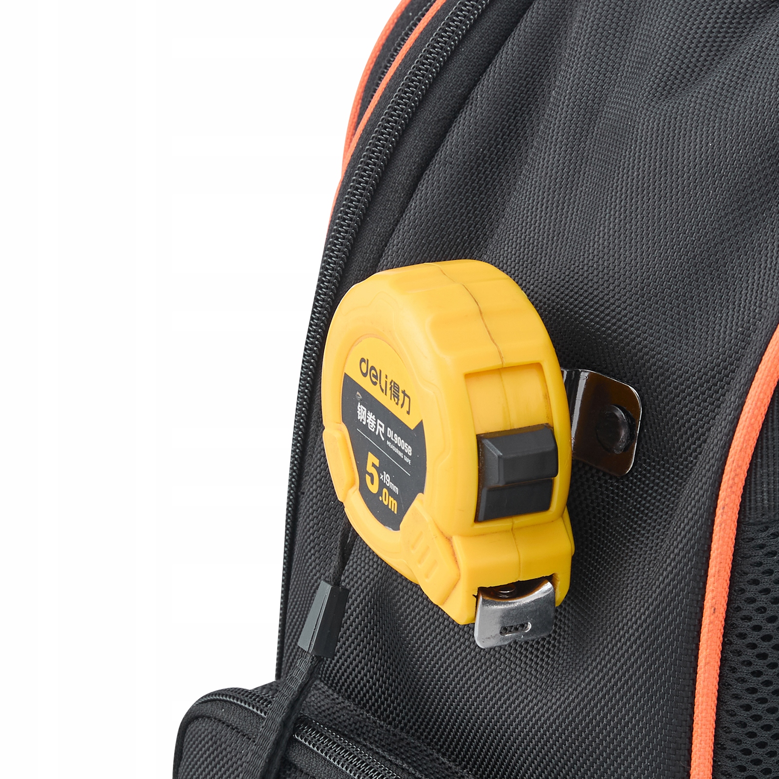Довговічність: цей рюкзак для інструментів на колесах виготовлений із міцної тканини Оксфорд і має міцну поліпропіленову (PP) основу. Виготовлений із водонепроникного матеріалу 1680D, він стійкий до розривів і легко чиститься. Міцні ніжки забезпечують стабільність і запобігають перекиданню.