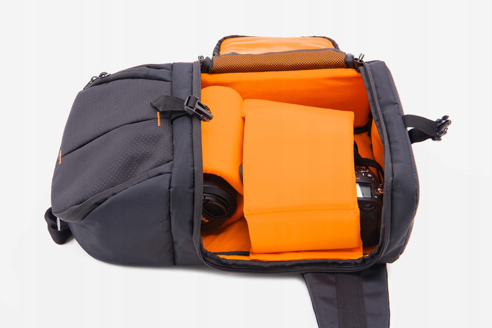 Рюкзак має безпечну основну камеру , вистелену м'якою підкладкою. Він використовує систему переміщення відсіків, яка дозволяє ідеально відповідати камері. Завдяки цьому він стабільний та безпечний у визначеному місці, а простір оптимально розроблений.