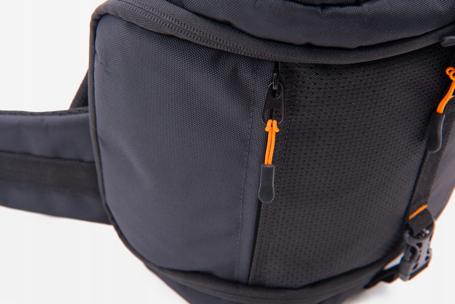 Ззовні є бічна кишеня з блискавкою, яка вміщує лінзи, аксесуари, акумулятори та картки пам'яті.
