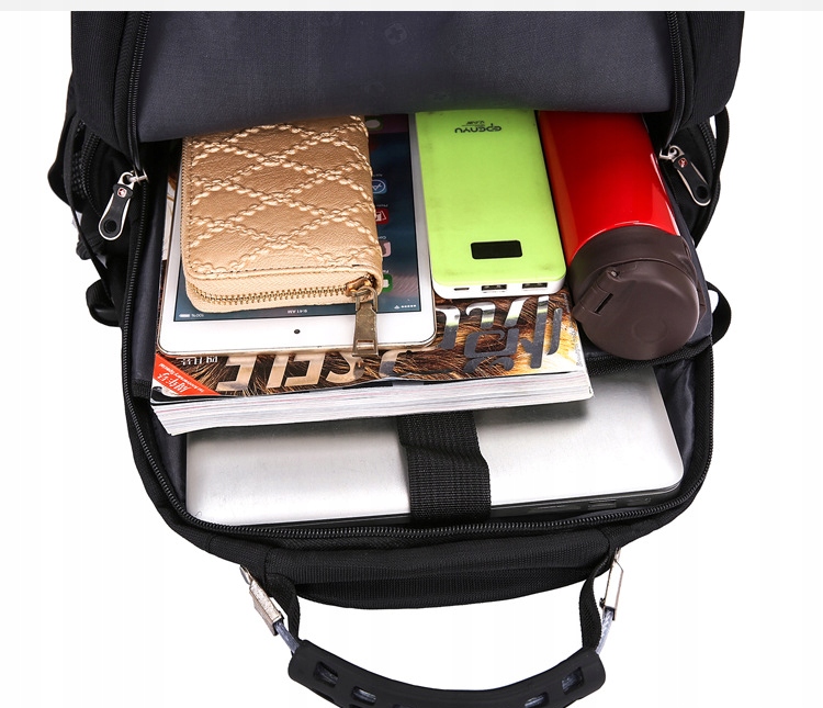 Рюкзак також можна придбати у версії з USB портом, тому немає необхідності брати павербанк з рюкзака, щоб зарядити телефон. Зауважте, що павербанк не входить у комплект.