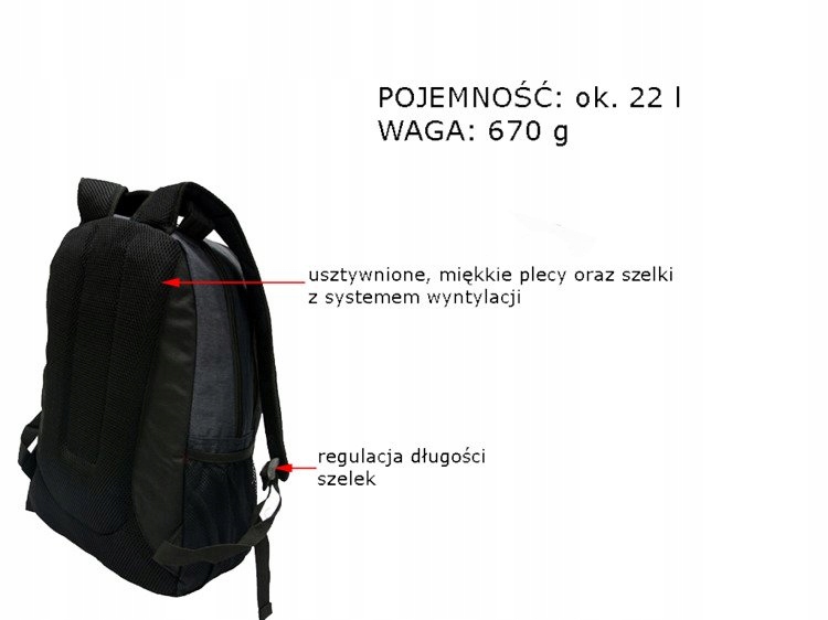 - Рюкзак має 15 -дюймову кишеню ноутбука з розмірами 34 см х 28 см х 3 см,