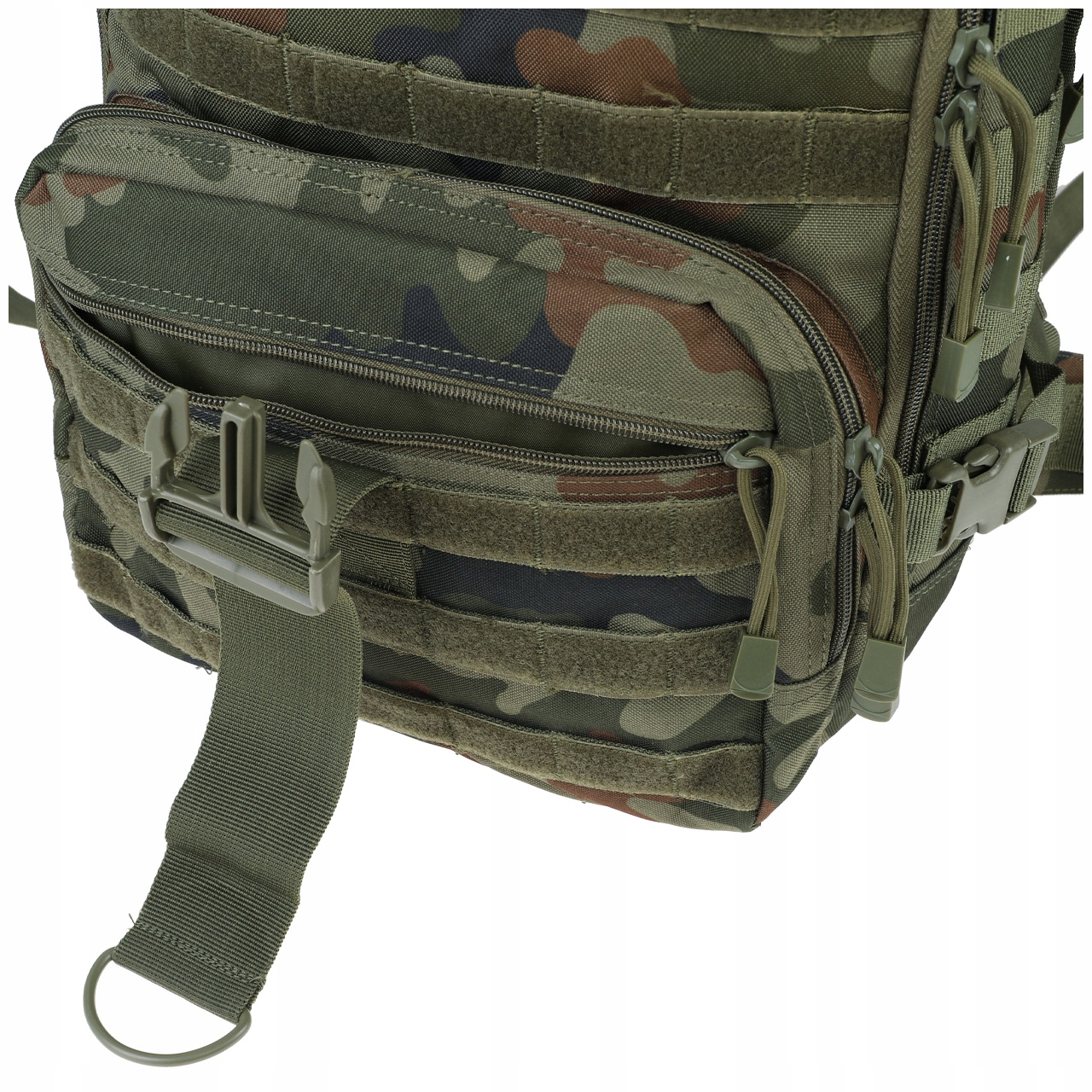 Модель має систему Molle з липучками для кріплення додаткового обладнання та з можливістю кріплення емблем. З боків рюкзака є компресійні лямки, які дозволяють регулювати глибину рюкзака відповідно до його фактичного наповнення.