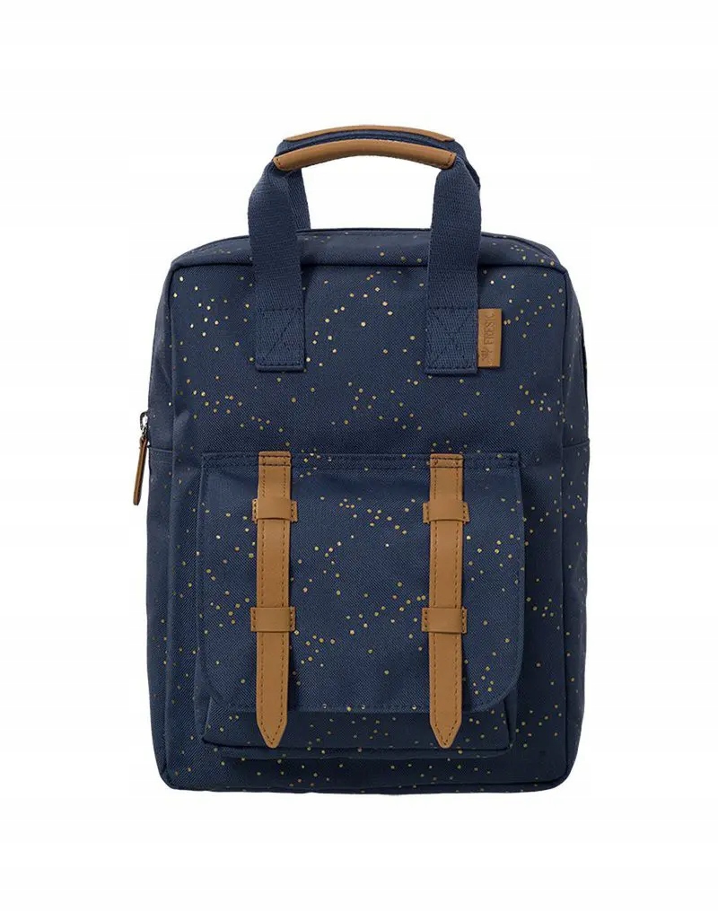 Рюкзак із золотими крапками Indigo Fresk. Суперкрутий рюкзак для малюка. Ідеально підходить для дитячого садка і для подорожі. Застібається на блискавку, з великим відділенням і відділенням для напоїв. Зовнішня кишеня закривається на магнітні застібки, регульовані ремені, зручна ручка.