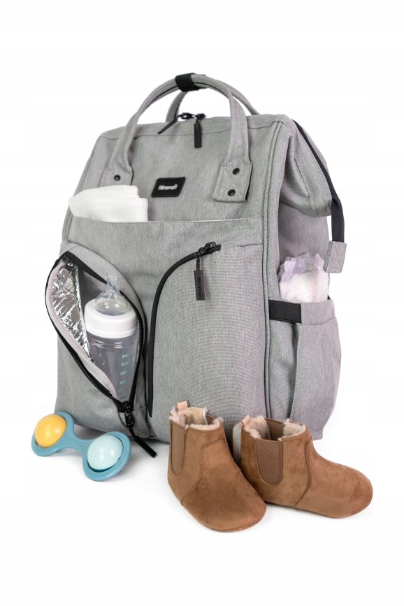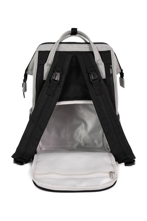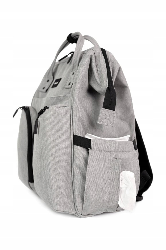 - ФУНКЦІОНАЛЬНІСТЬ: основне відділення та невеликі передні кишені закриваються на блискавку. З боків є дві кишені, напр. за пляшку води/пляшку води. Всередині рюкзака є функціональні кишені для пляшок або інших аксесуарів, а також додаткове водонепроникне відділення на блискавці, де можна зберігати, напр. підгузник (кишеню можна помити під проточною водою). Рюкзак має спеціальні підвіси, які дозволяють кріпити його до коляски. Додаткові передні термокамери - комфортне рішення для зберігання дитячого харчування або підігрітого молока. На задній стінці є додаткова функціональна кишеня на блискавці поруч із нею, що забезпечує прямий швидкий доступ до внутрішньої частини рюкзака.