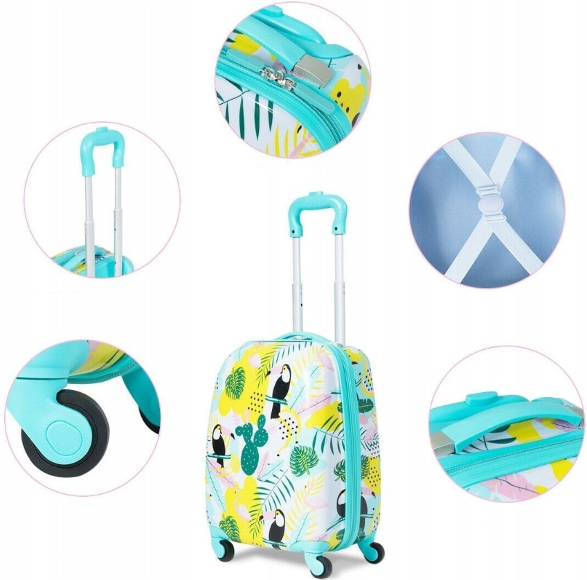 Якщо ви переглядаєте різнокольорові валізи для дітей у пошуках чогось унікального, цей набір точно привернув вашу увагу ! Валіза і рюкзак (ідеально підходить для ручної поклажі) утворюють дует, який порадує багатьох дітей. Барвиста весела графіка є характерною, тому її легко впізнати (і важко втратити). Маленький розмір полегшує дітям перенесення власного багажу, а жорсткі стінки валізи та рюкзака забезпечують належний захист вмісту. Більше того, в таку валізу дитині легше упакувати свій багаж – навіть якщо у валізі чи рюкзаку має бути місце для кількох додаткових речей – сувенірів з моря, м’яких тварин, виграних у парку розваг, чи черепашок, зібраних на пляжі. Пляжний. Валіза на колесах для дітей може стати гарним подарунком і неодмінно полегшить поїздки в літні табори та літні табори, а також відпочинок з батьками.