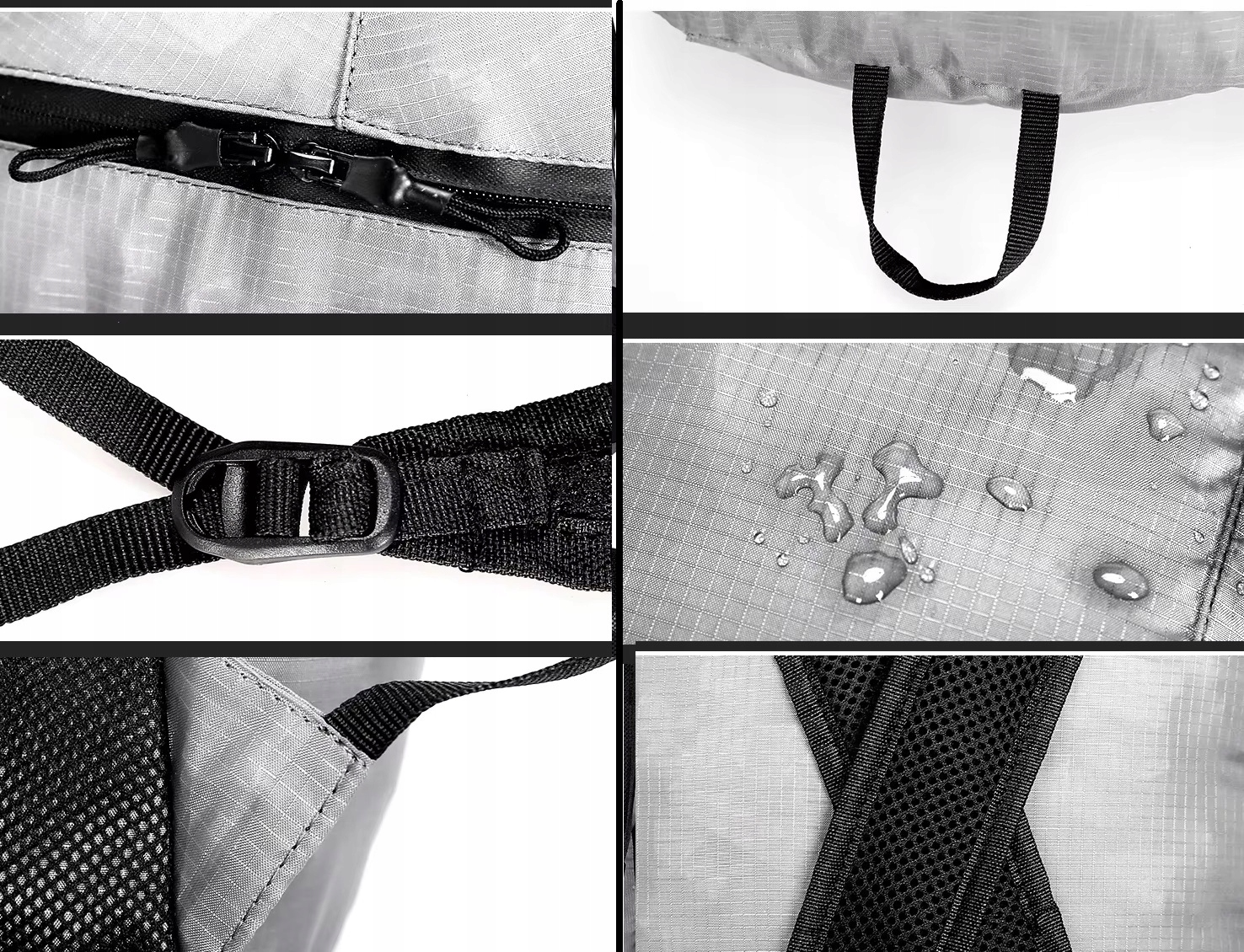 praces Praces, що вбудовуються на Nylon Tappes та всередині 3d меса Весь рюкзак важить нижче 100 грам, тому, незважаючи на високі сили "каміння";) ідеально підходить для одягу, покупок, як додатковий рюкзак під час поїздки.