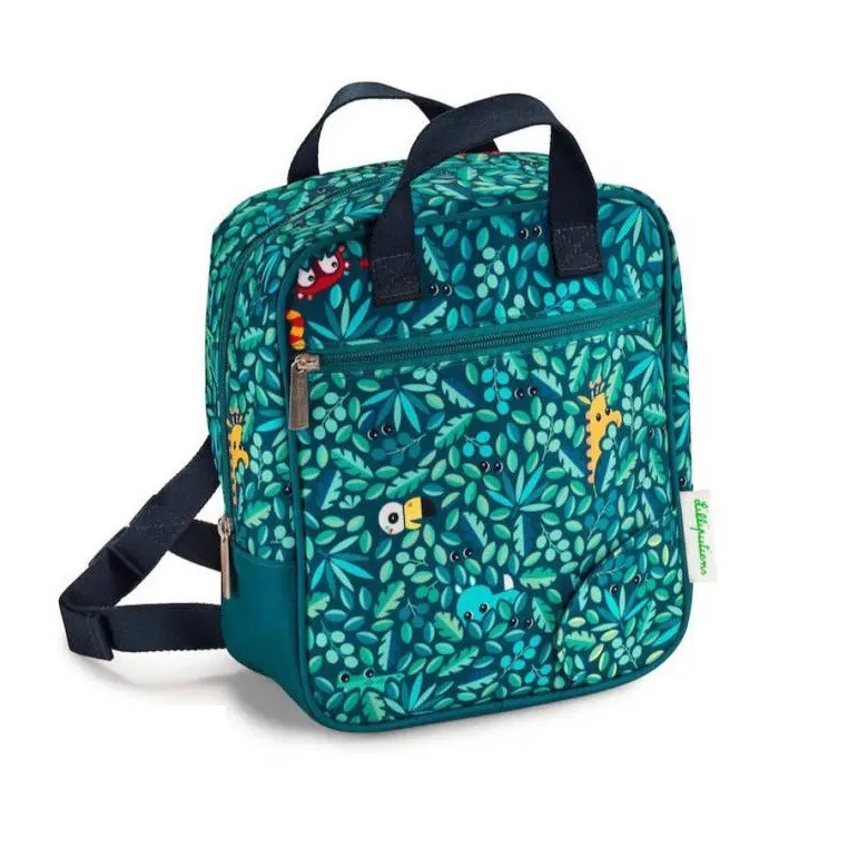 Чарівний і зручний рюкзак з колекції джунглів від друзів -лінійних ліній під час подорожі бельгійської марки Lilliputiens. Функціональний, легкий та зручний, ідеально підходить для дитячого садка або для невеликих поїздок, вміщує всі необхідні дрібниці. Рюкзак має цікавий дизайн - він зберігається в бірюзовому, зеленому та темно -синього кольору, він відрізняється густим овочевим малюнком та прихованими в ньому фігурами тварин, характерними для бренду, включаючи Тукан Пабло або Лев Джек. Він має головну камеру для повзунка та ще один менший спереду, також для повзунка.