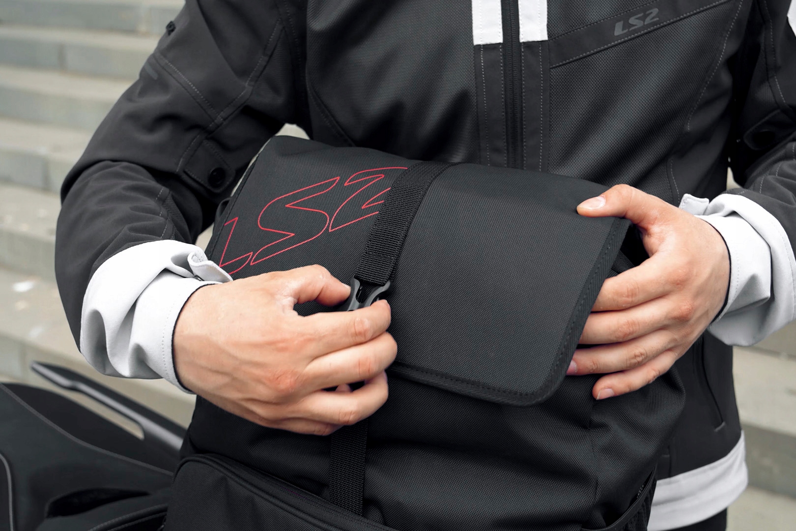 Завдяки водонепроникній конструкції, регулюванню та спеціальним рішенням для мотоциклістів, таким як тримач для шолома або легкодоступні кишені, це ідеальний супутник на будь-якому маршруті.