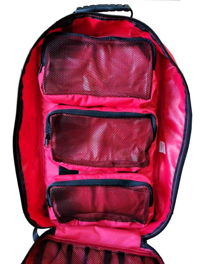 - Всередині основного відділення 3 ряди гумок для кріплення ампул або перев’язувального матеріалу та 2 сітчасті кишені,