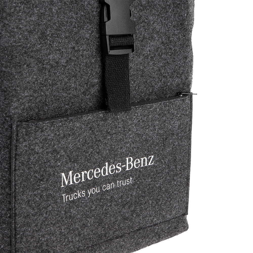 Повстяний рюкзак із застібкою на ремінці та передньою кишенею на блискавці. Внутрішнє відділення для ноутбука робить його ідеальним для поїздок. З логотипом Mercedes-Benz Trucks спереду.