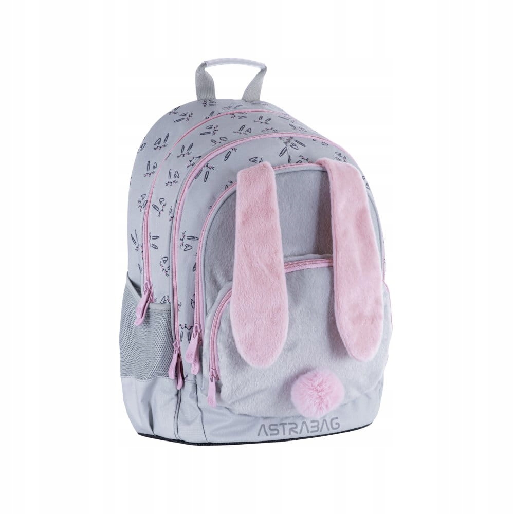 Рюкзак Astrabag із трьома відділеннями із серії Honey Bunny у чудових сіро-рожевих кольорах — абсолютний маст-хев цього сезону. Спереду рюкзак покритий приємним на дотик плюшем. Крім того, він прикрашений чарівними вушками зайчика, які підкорять серце кожної дівчини. Рюкзак оснащений трьома місткими відділеннями, повними практичних відділень. Використовується унікальна технологія Ergo Back, яка мінімізує тиск на плечі та хребет і забезпечує комфорт дитини. Важливо, що рюкзак Astrabag має гумове водонепроникне дно.