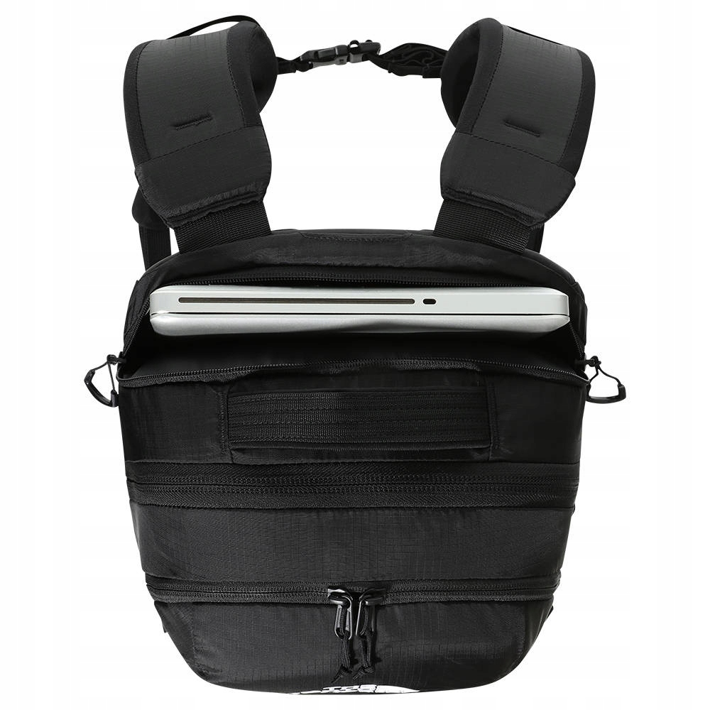 Рюкзак North Face має систему завантаження Flexvent ™. Пінопластові панелі належної форми забезпечують адекватну підтримку та відокремлюють багаж від спини. Крім того, спеціальна форма навантажувальних ременів пропонує свою ідеальну придатність до фігури. Велика ємність - це ефект оснащення рюкзака трьома окремими камерами. Вони доступні зверху і дозволяють зручно розповсюдити документи, книги, зошити або навіть плаття для післяобідніх тренувань. Один з них може легко помістити ваш ноутбук. На передній частині рюкзака ноутбука є велика сітчаста кишеня. Традиційні кишені для додаткового обладнання або пляшку води були розміщені з боків. Ви також оціните кишеню з флісовою підкладкою, в якій ви будете ховати окуляри або смартфон.
