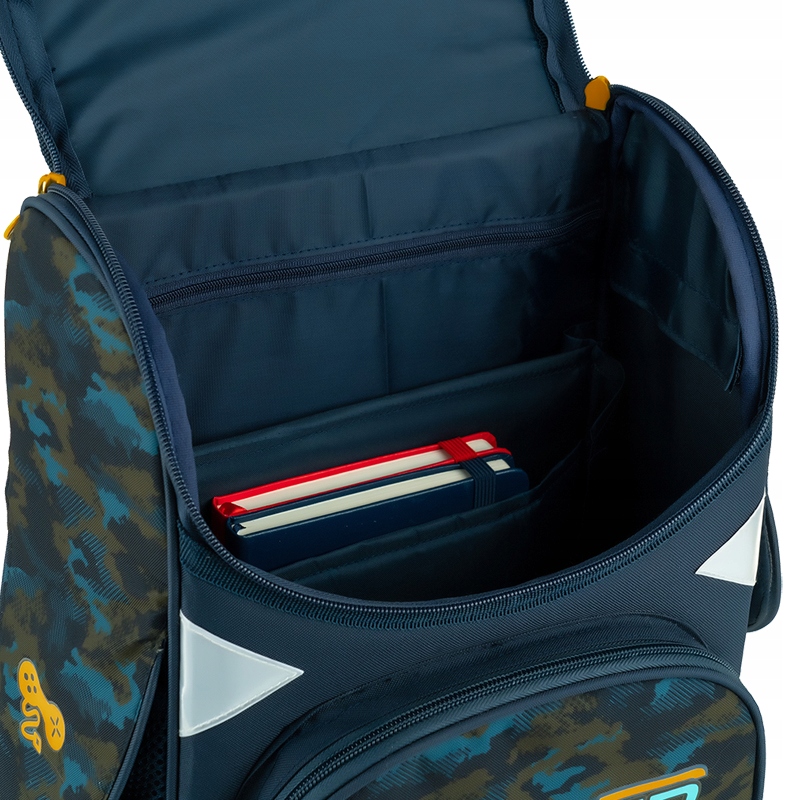 - Внутрішні відділення для підручників і зошитів з еластичною застібкою: завдяки продуманій системі зберігає баланс ваги і допомагає підтримувати порядок усередині рюкзака;