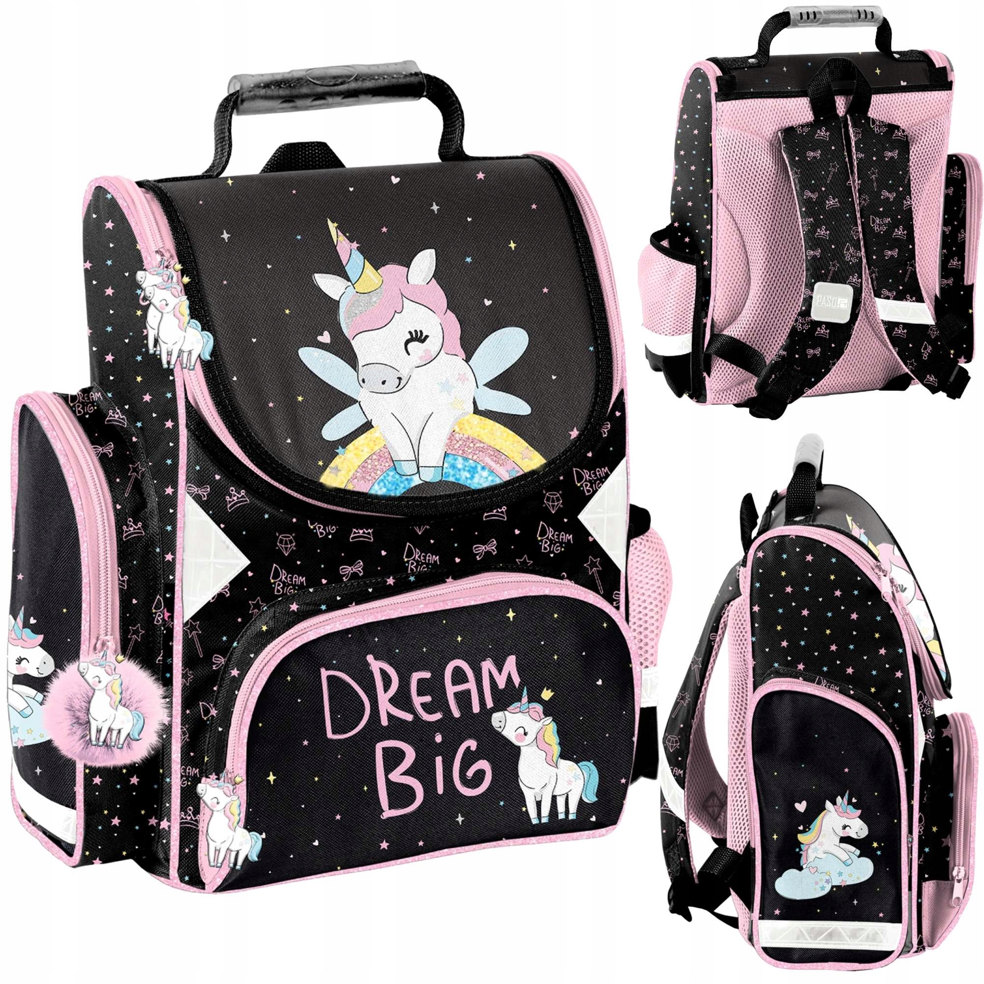 Він рожево-чорний і має зображення милого єдинорога. На замках є маленькі зображення тварини.