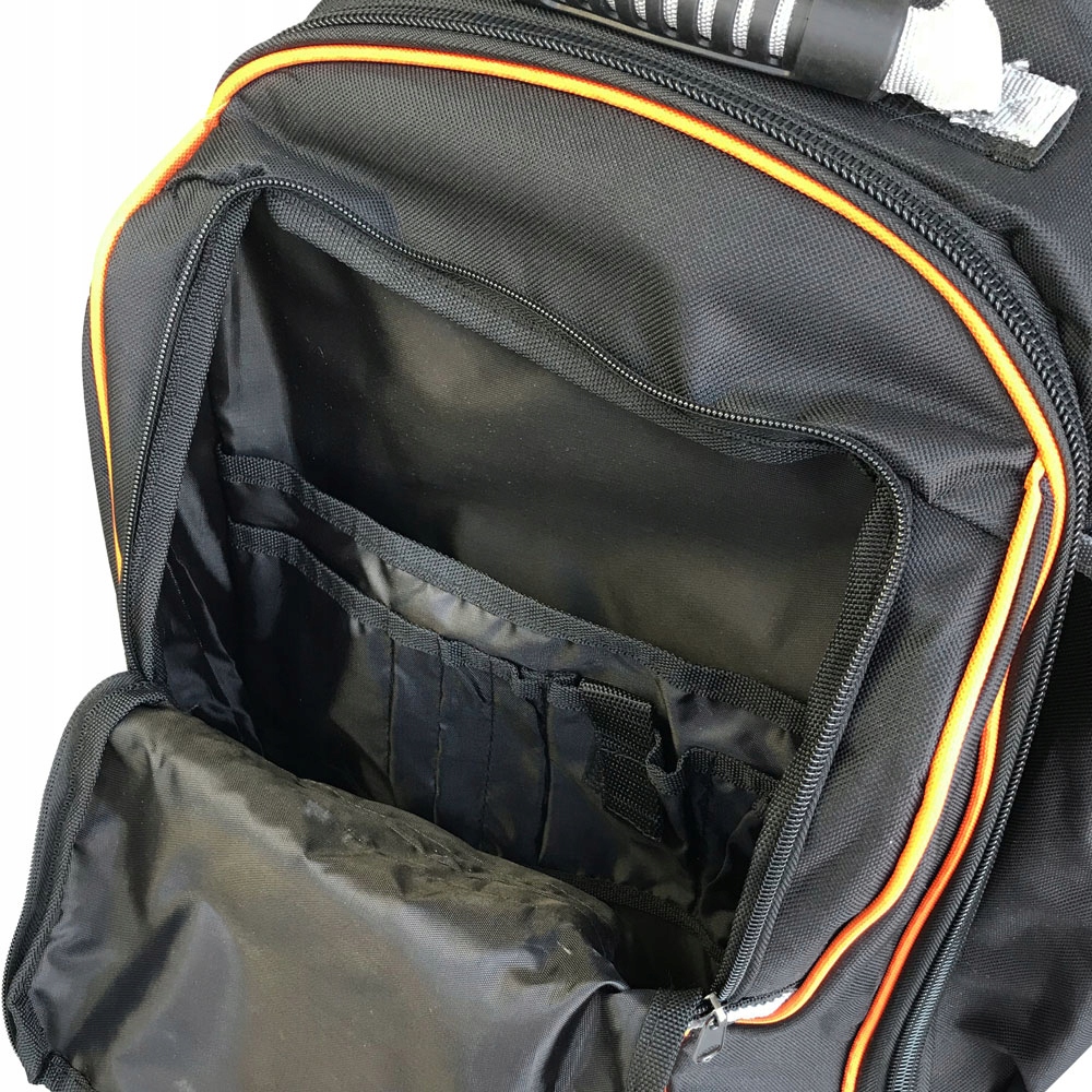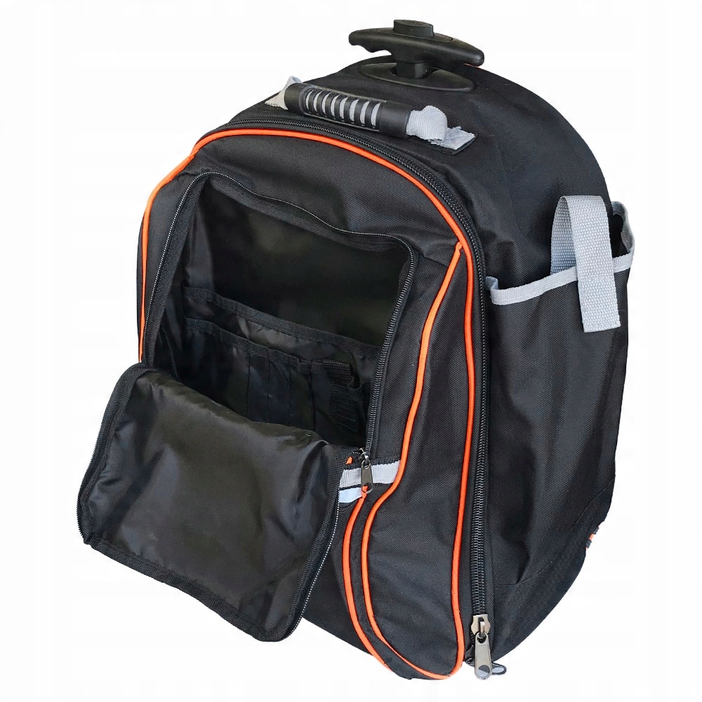 Рюкзак на колесах для зберігання та перенесення інструментів із висувною телескопічною ручкою для зручного транспортування. Сумка додатково оснащена трьома ручками для комфортного перенесення.