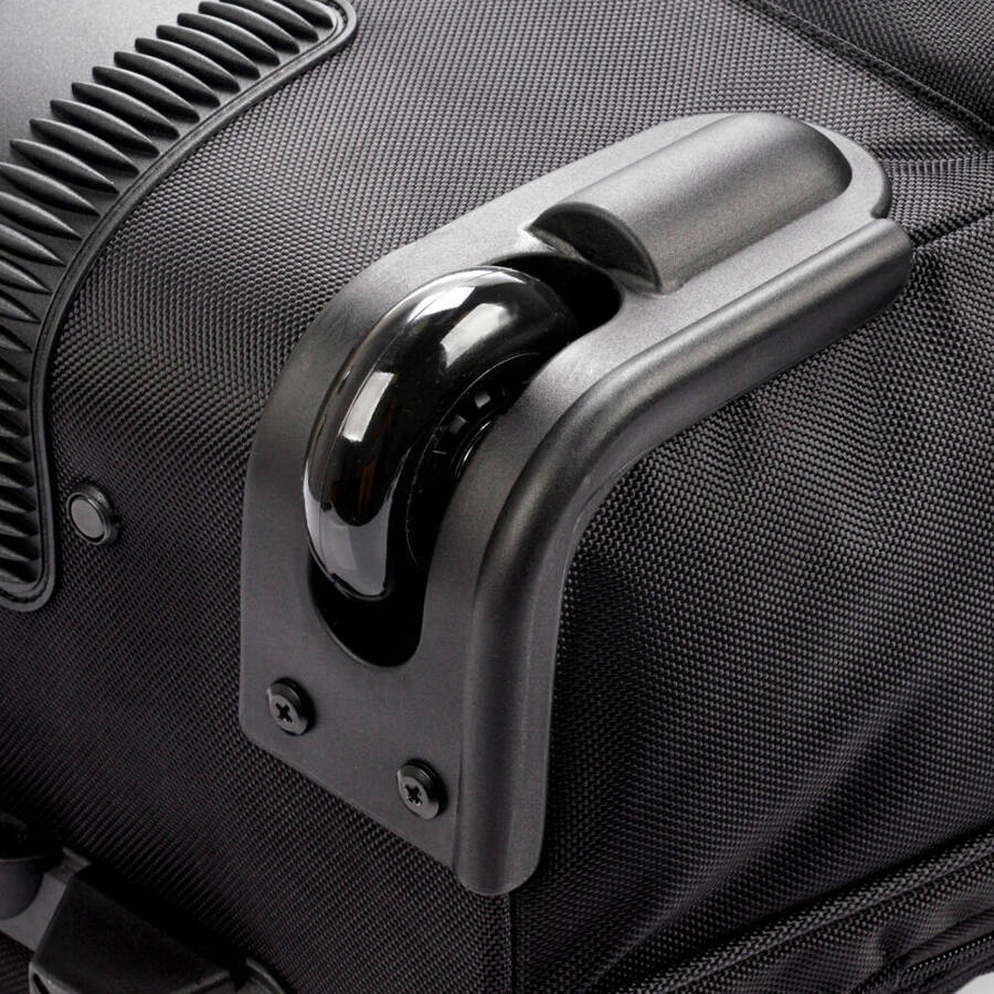 В основі рюкзака розташовані тихі колеса, які забезпечують плавність ходу і стабілізуючі ніжки, які захищають багаж від стирання та бруду. Рюкзак також має міцну ручку для перенесення.