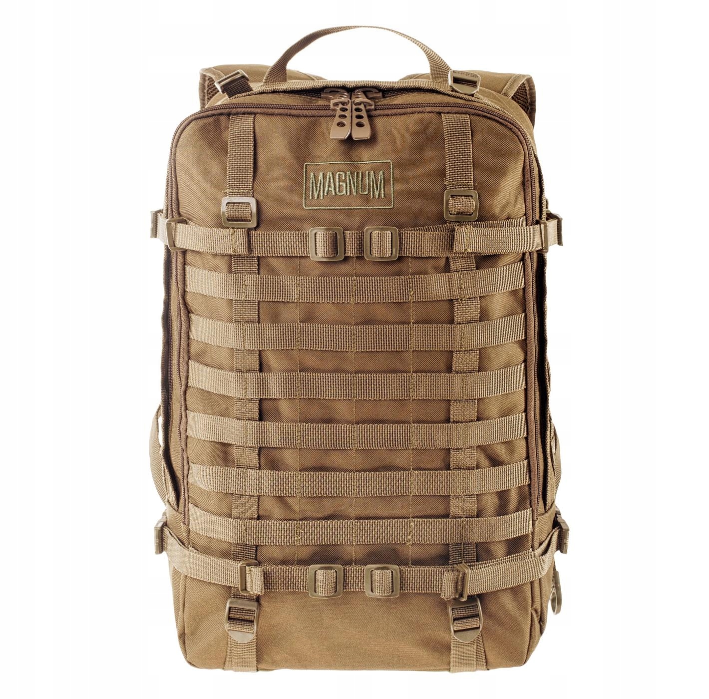 Magnum Taiga 45L -це рюкзак, який має ємність головної камери , відкрита з двоповерховим замком. Ви можете легко упакувати всі необхідні речі. Наступний кишеню був розміщений організатор, , який буде організовувати предмети всередині. У головній кишені ви можете упакувати пляшку з водою з водою, яка сприятиме зрошенню під час довгого маршу. Magnum Taiga 45L має Molle System , що дозволяє прикріпити додаткові елементи поза рюкзаком. ремінь стегна, регульовані, підкладені брекети та пінопластові панелі на задній частині збільшують комфорт використання.