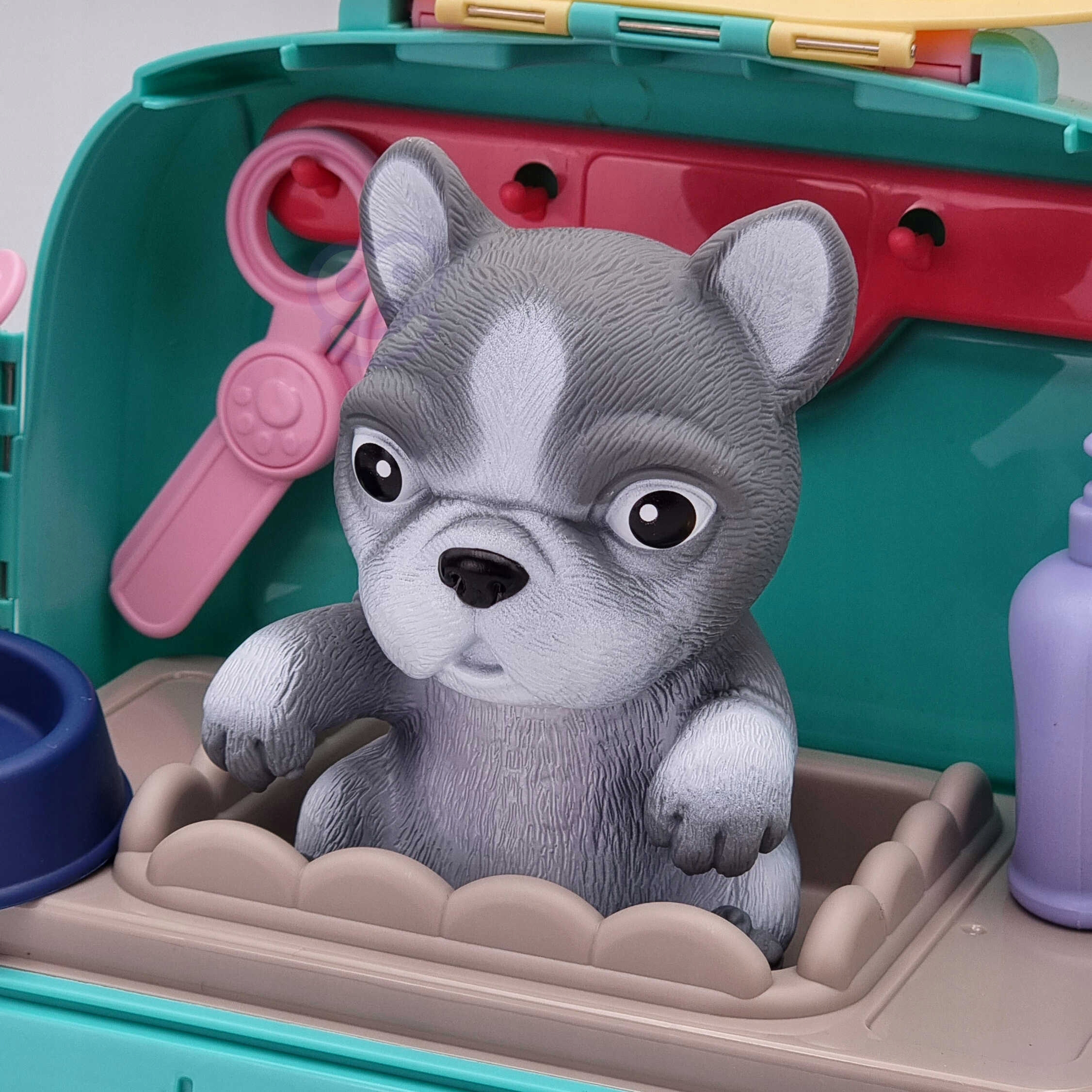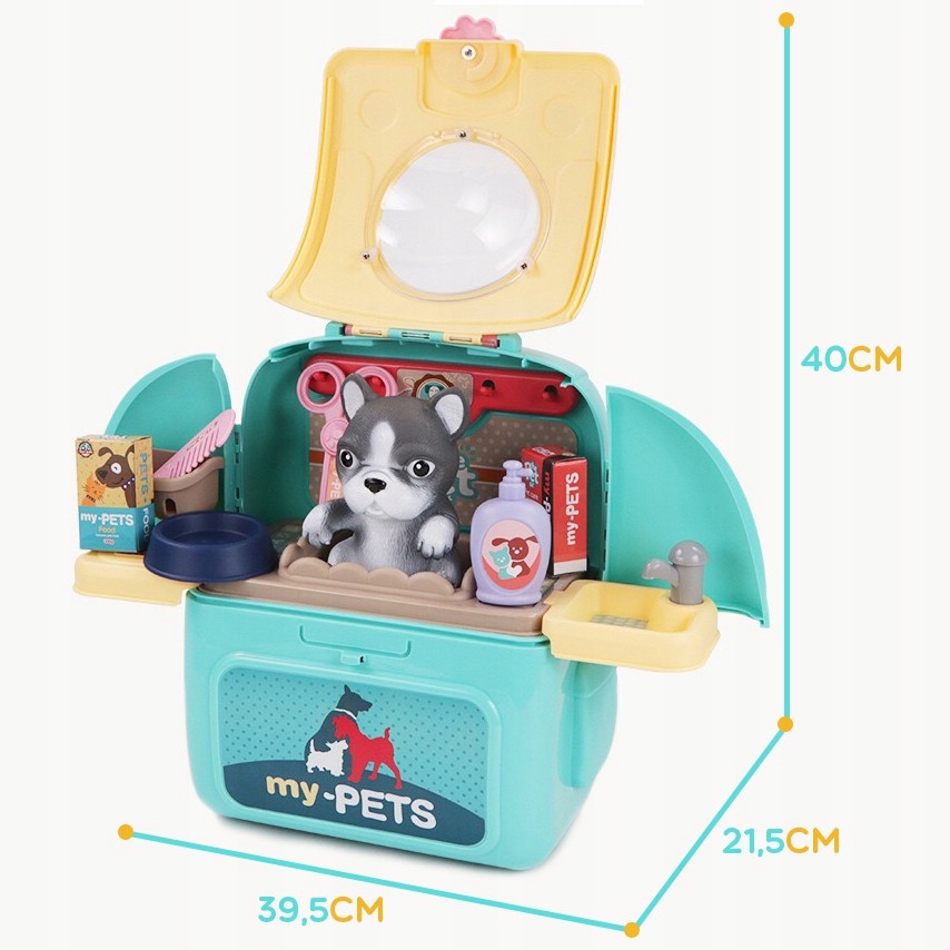 Портативний набір для собак від бренду WOOPIE дозволить вашій дитині піклуватися свого улюбленого вихованця. У зручному портативному рюкзаку ви можете брати з собою всюди: у подорож, на майданчик чи в дитячий сад. Рюкзак має підйомну ручку і спеціальну застібку, яка запобіжить відкриванню кабіни під час транспортування і забезпечить максимальну безпеку вихованця. У набір для догляду 2 в 1 входять: фігурка собаки, рюкзак, ремінь (для одягання кабінки на спинку), миска, ножиці, гребінець, кошик для аксесуарів, 2 коробки для їжі. , шампунь, раковина, змішувач, поличка та вішалка. У набір входить все необхідне для догляду за вашим вихованцем. Дитина може помити і погодувати свого собаку. Взявши на себе роль доглядача або ветеринара, дитина розвиває свою уяву та почуття емпатії. Цілком можливо, що ця іграшка стане початком для того, щоб захопитися і стати ветеринаром.