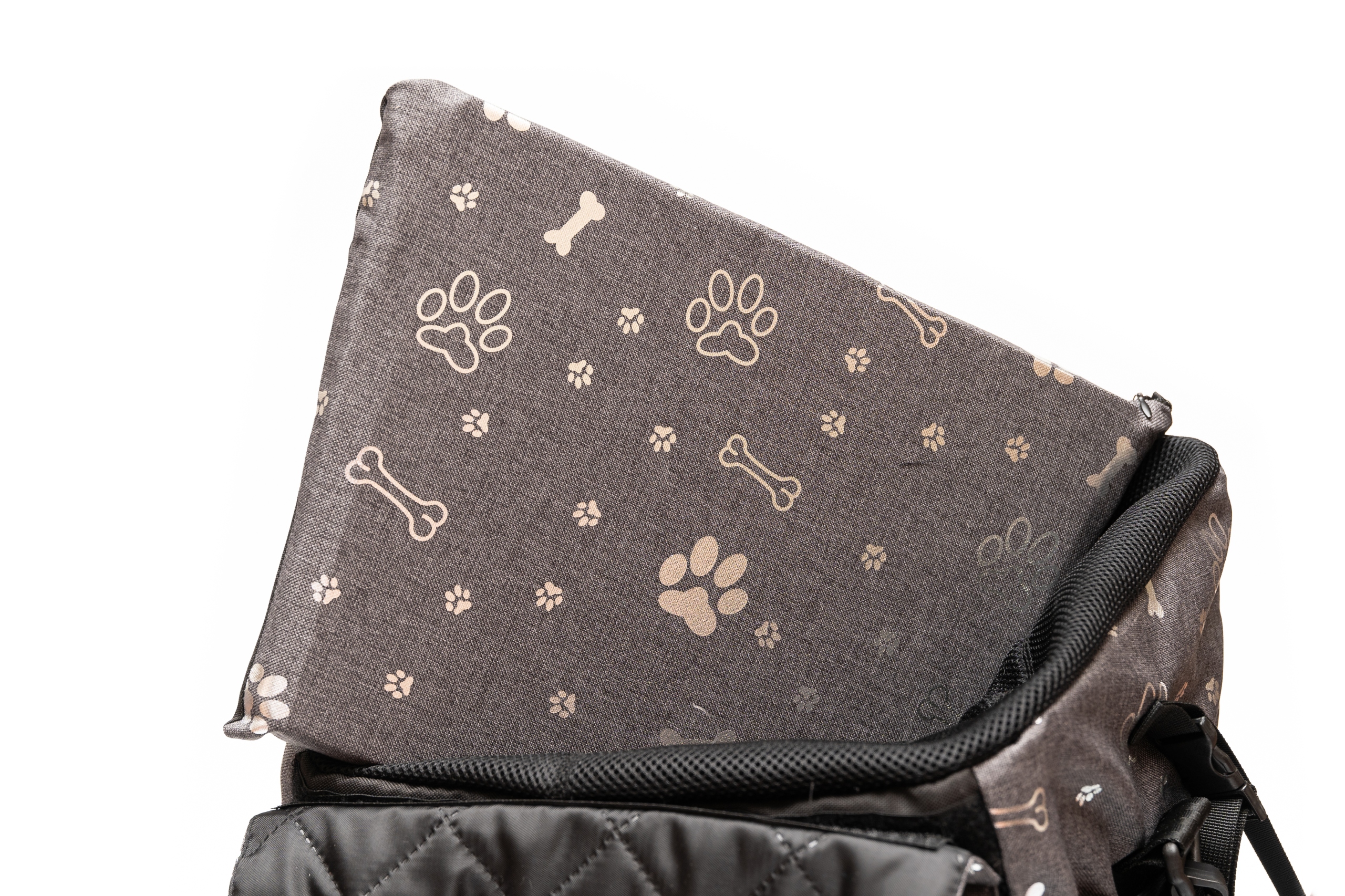- сітка захищає собаку або кота від вистрибування з переноски, а також забезпечує хорошу циркуляцію повітря, видимість, захищає від вітру та комах
