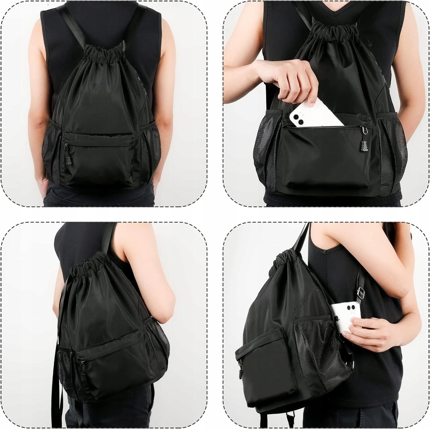 ★Високоякісний матеріал: сумка на шнурках виготовлена з нейлону, який захищений від бризок, який є міцним і довговічним, а все всередині добре захищено. Завдяки м’якому матеріалу цю легку сумку легко носити, а коли вона не використовується, її можна скласти в невеликий куб.