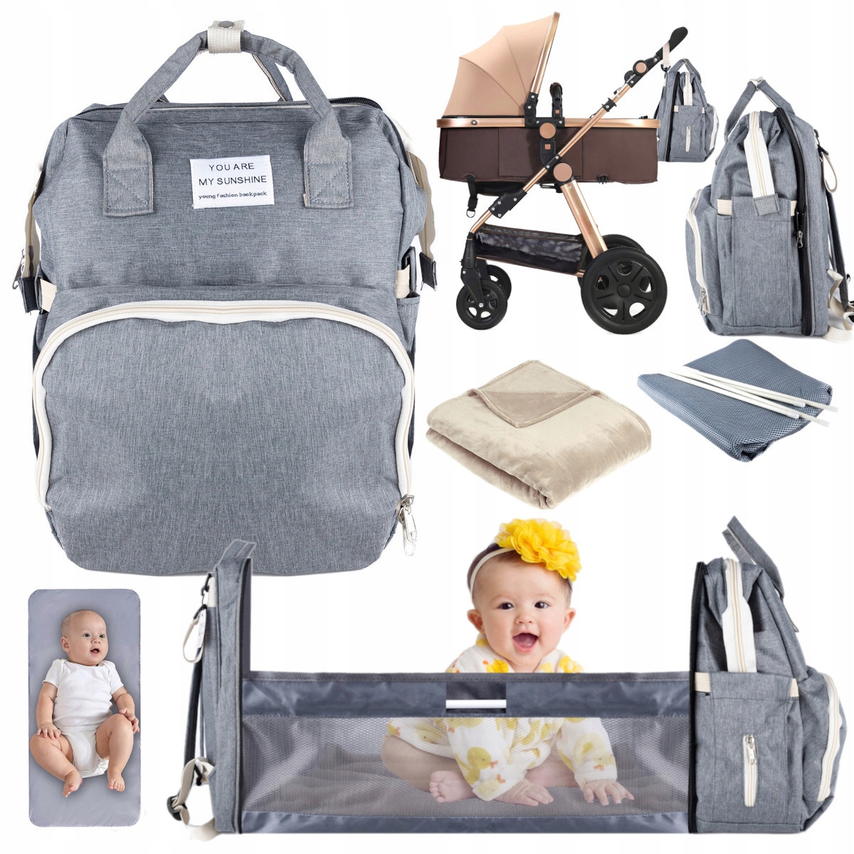 рюкзак для візки можна легко розгорнути, щоб зручно та безпечно поставити дитину, коли виникає потреба. Після розгортання сумка може бути використана як ігровий пап, що буде чудовим як місце для короткої дрімоти. Ви можете легко перемотати свою дитину в будь -якому місці! .