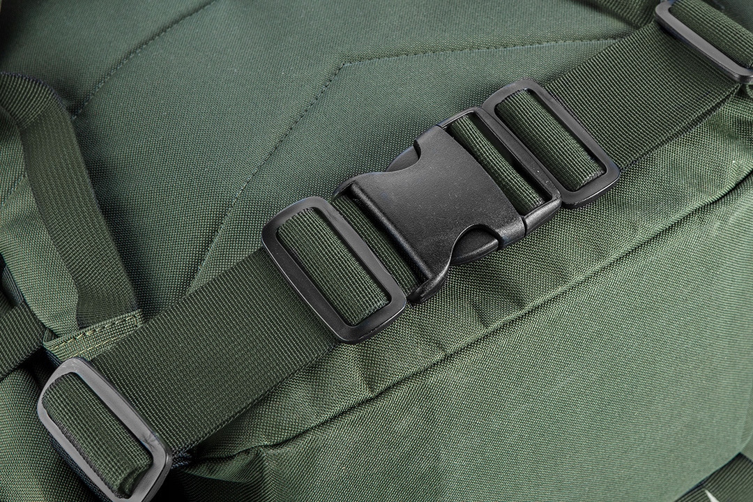 Продукт 4-в-1: до рюкзака входять 2 маленькі бічні та 1 середня центральна сумки. Всі додаткові сумки знімні, а середня сумка також має плечовий ремінь. Містке основне відділення, ремені для перенесення спорядження на вулицю та додаткові сумки дозволяють ергономічно розподілити упаковане спорядження.