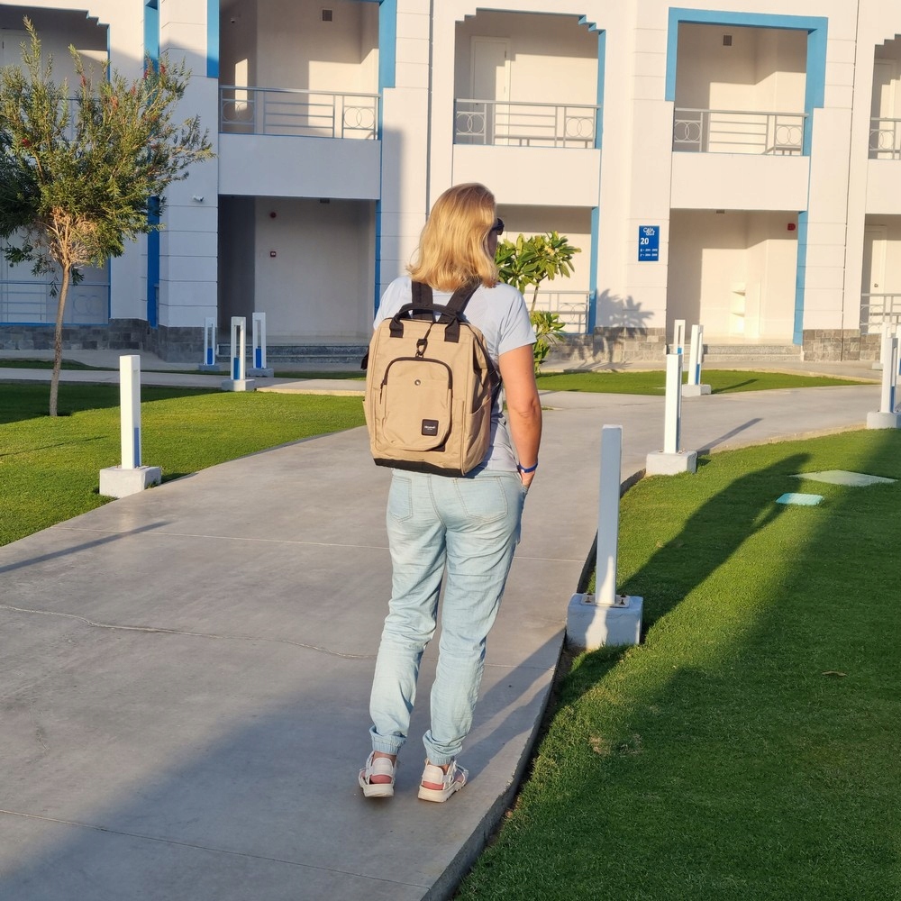 У комплекті з рюкзаком є невелика сумка на плечовому ремені розміром 22 x 17 x 2,5 см.