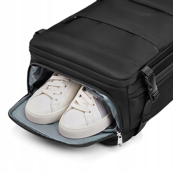 Відкрийте приховану кишеню взуття! Цей інтелектуально розроблений простір вмістить одну пару взуття розміром 46. Відокремившись від решти вашого одягу, ви завжди будете впевнені, що вони чисті та безпечні. Крім того, спеціальні отвори вентиляції забезпечують циркуляцію повітря, щоб ваше взуття завжди було свіжим і готовим до використання.
