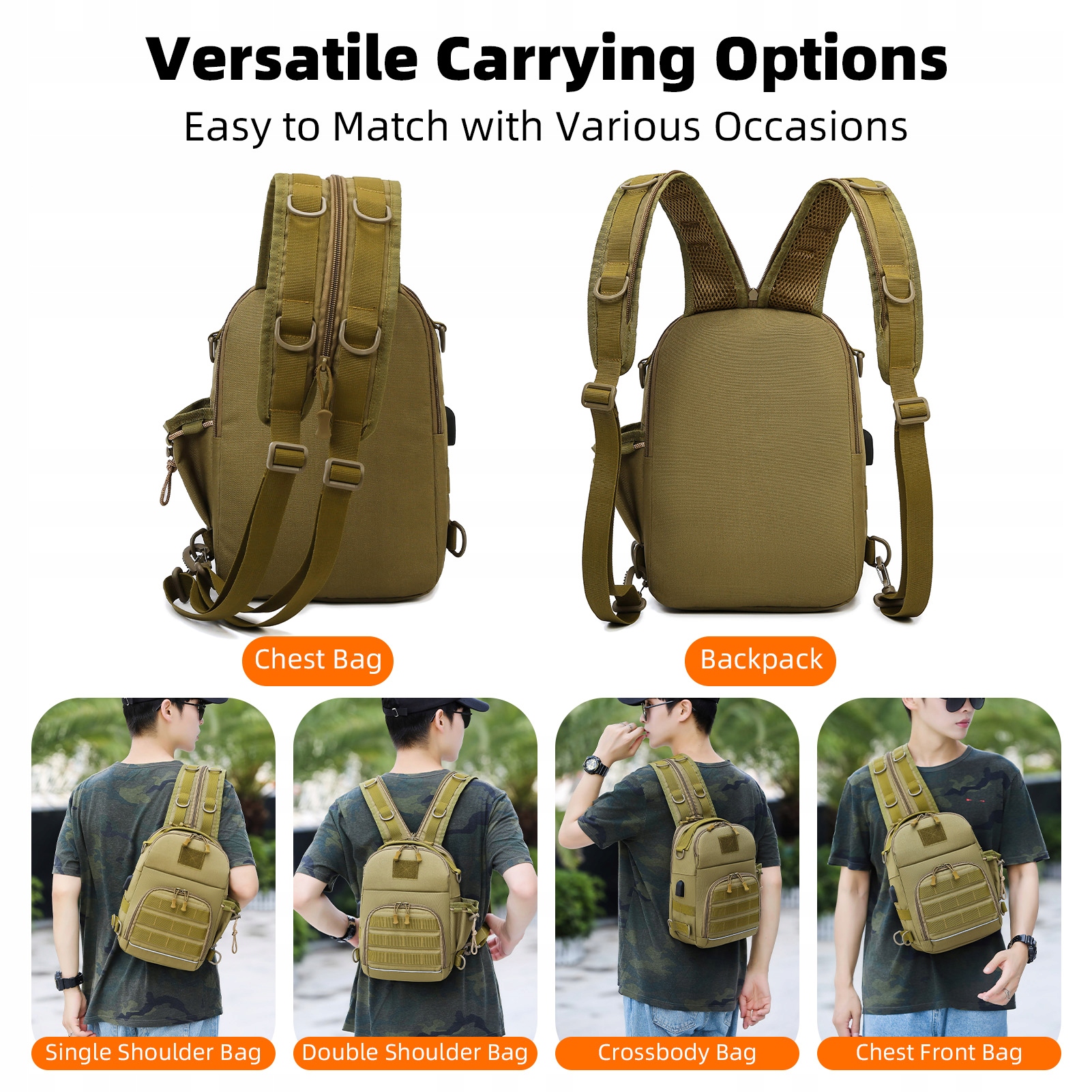 1. Багатофункціональний проект: легко перетворюється з однієї руки в перехрестя, груди, рюкзак або подвійну руку.