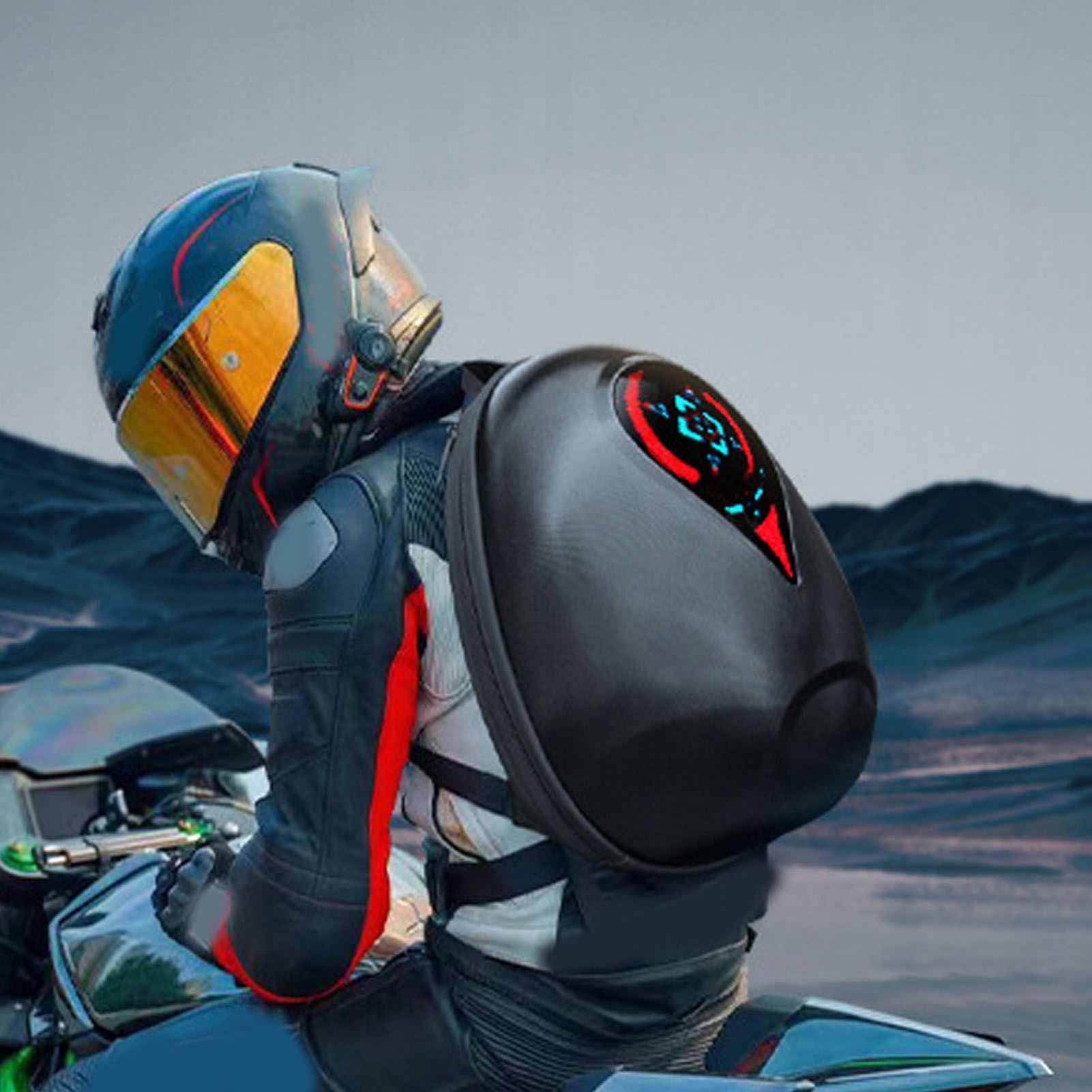 3. Рюкзак для верхової їзди: цей світлодіодний рюкзак, розроблений спеціально для їзди на мотоциклі, має персоналізовані повідомлення та привабливу графіку, щоб ви виділялися під час подорожі